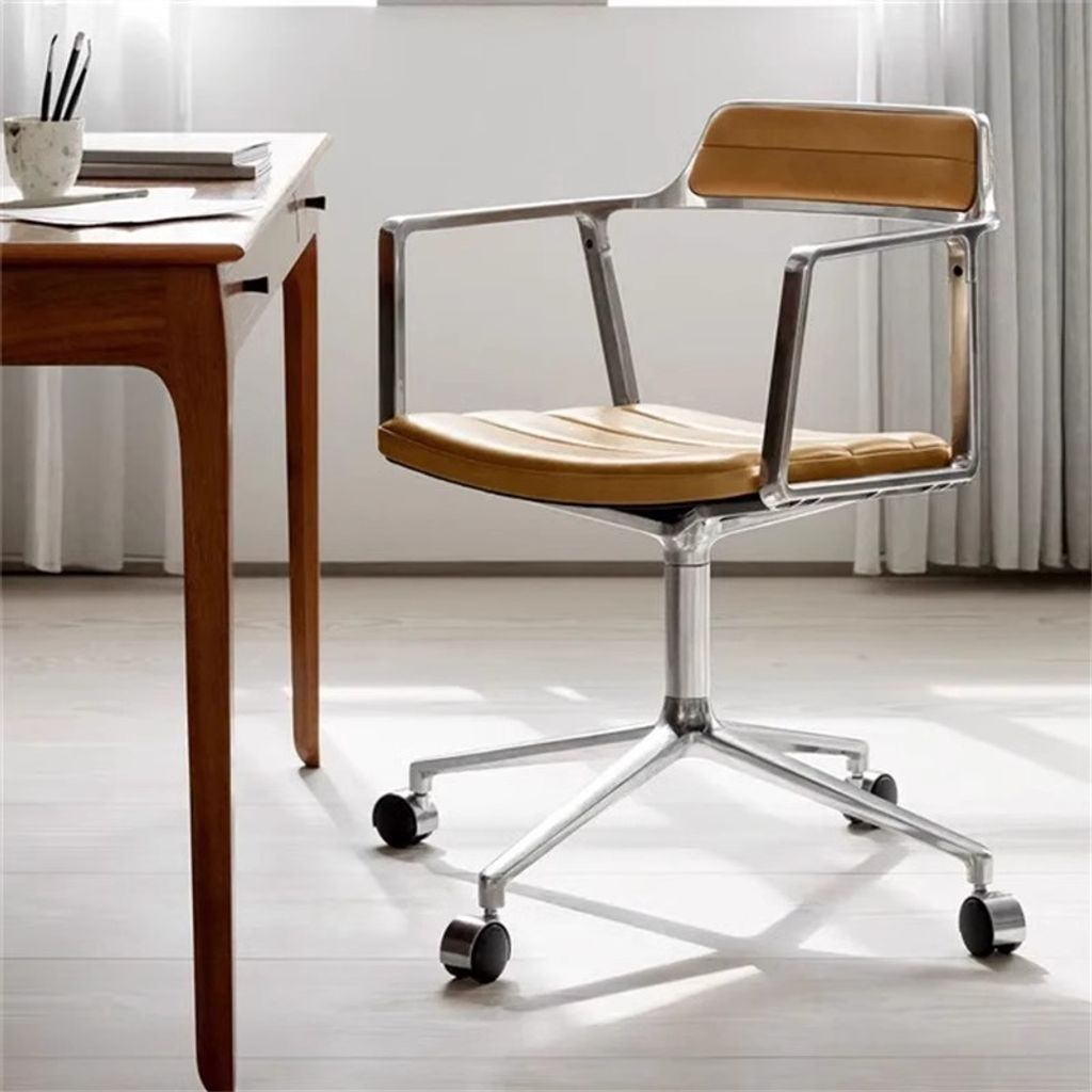- Sand Leather Stainless Steel Arms Alloy Foot Fixed Arms
