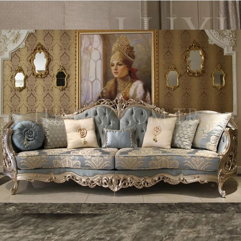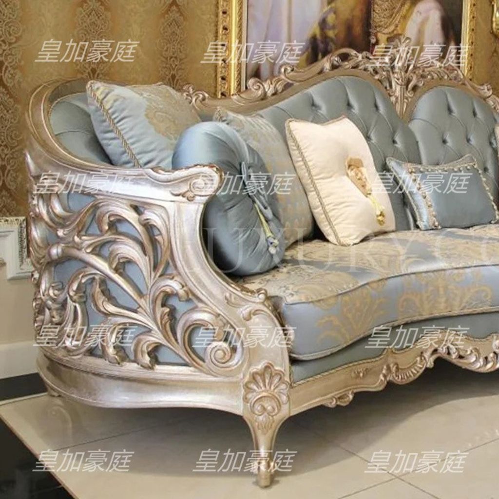 European Fabric Sofa French Solid Wood Villa Living Room Furniture Whole Hand Carved Luxury Factory Custom