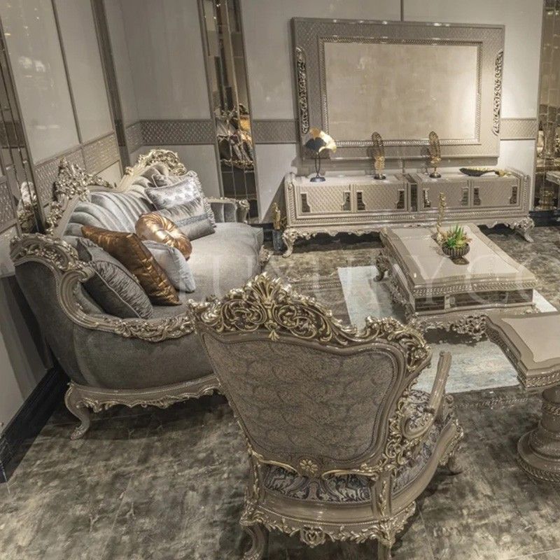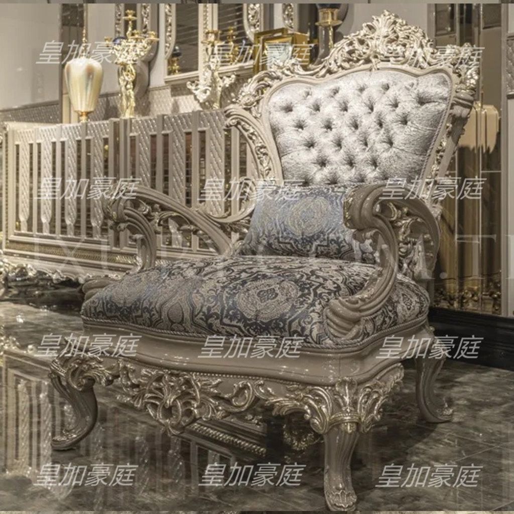 European Fabric Sofa Set 123 French Royal Solid Wood Carving High End Luxury Villa Living Room Custom Furniture