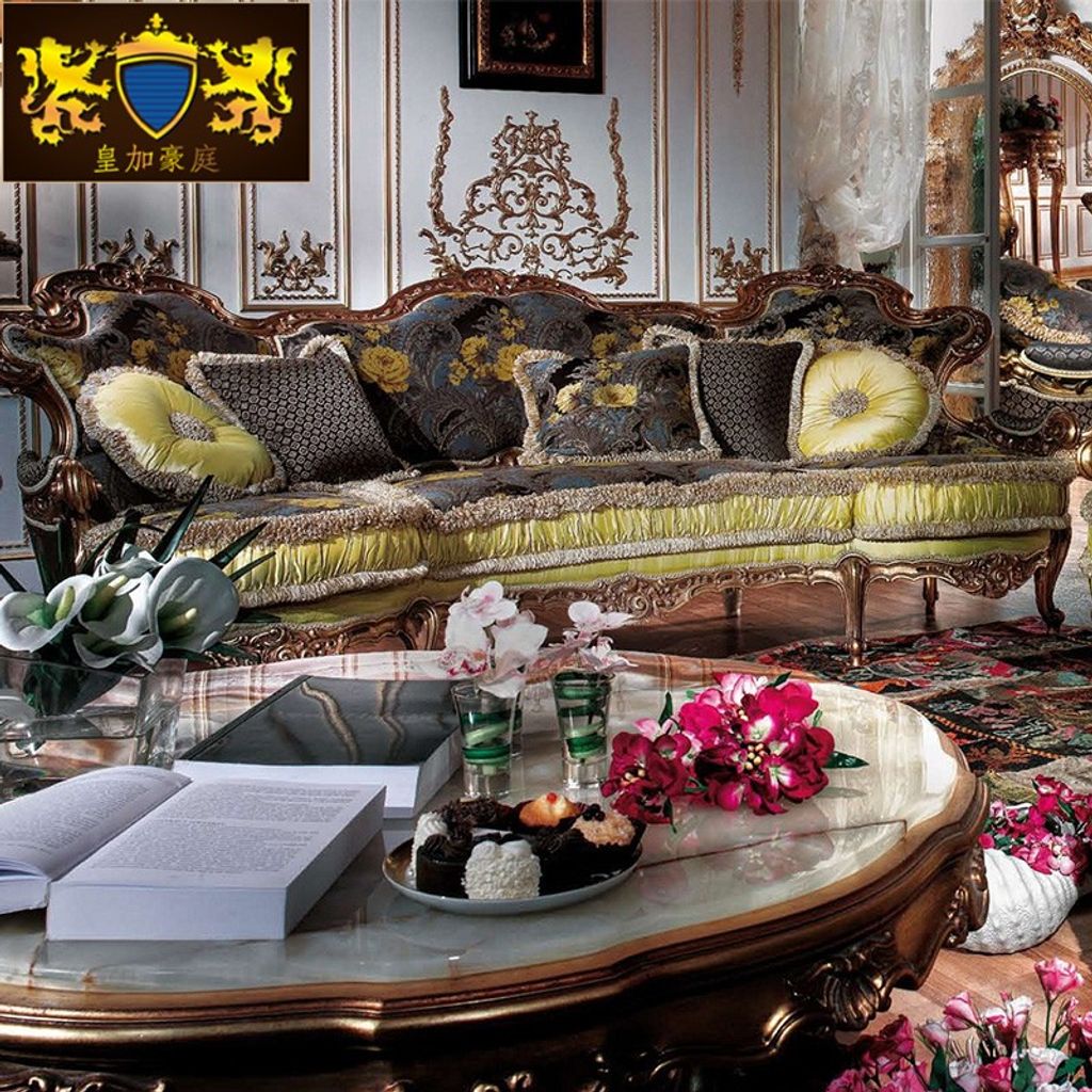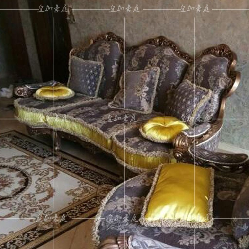 European Fabric Sofa Set 123 Solid Wood Luxury Carved Living Room Furniture American Sofa Whole Set Villa Sofa