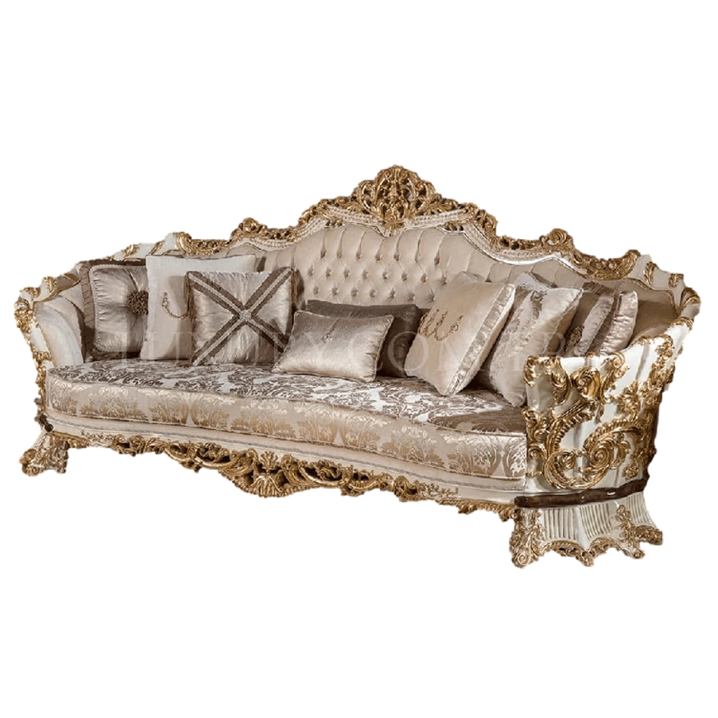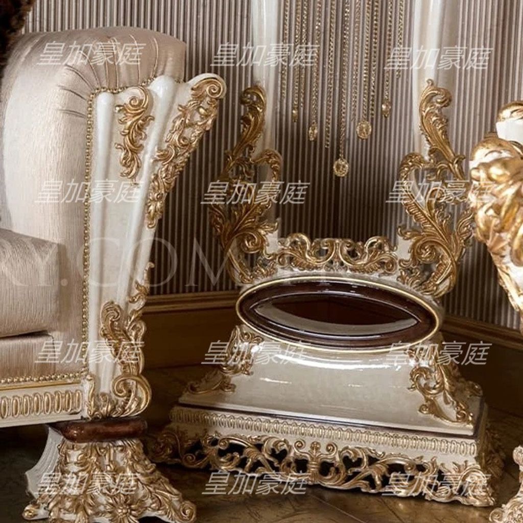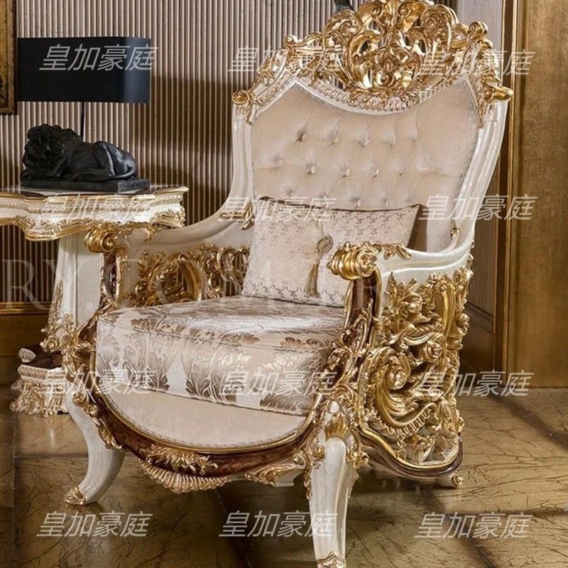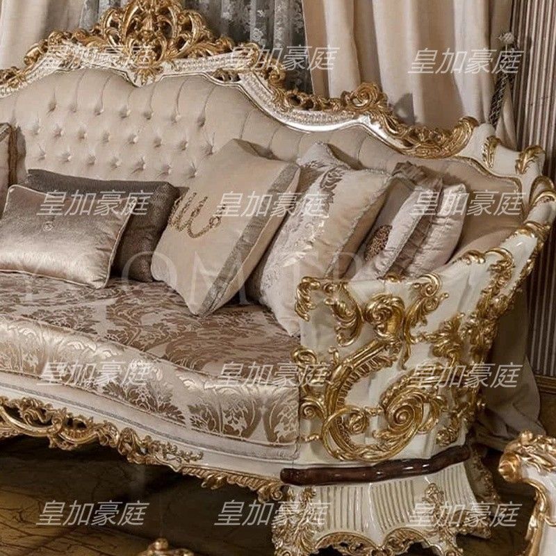 European Fabric Sofa Set Large Size Living Room White Gold Tracing French Classic Villa Sofa Solid Wood Furniture