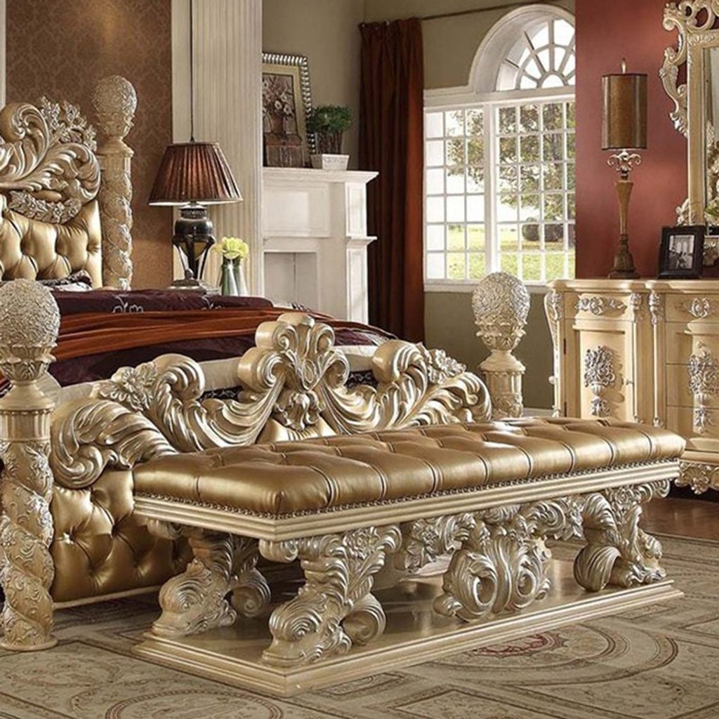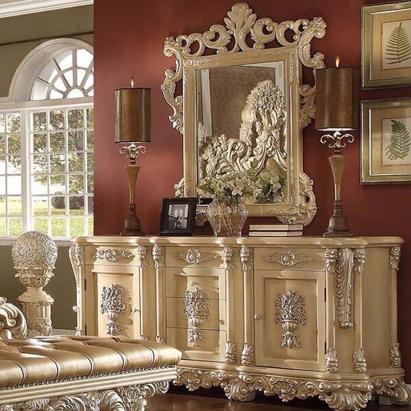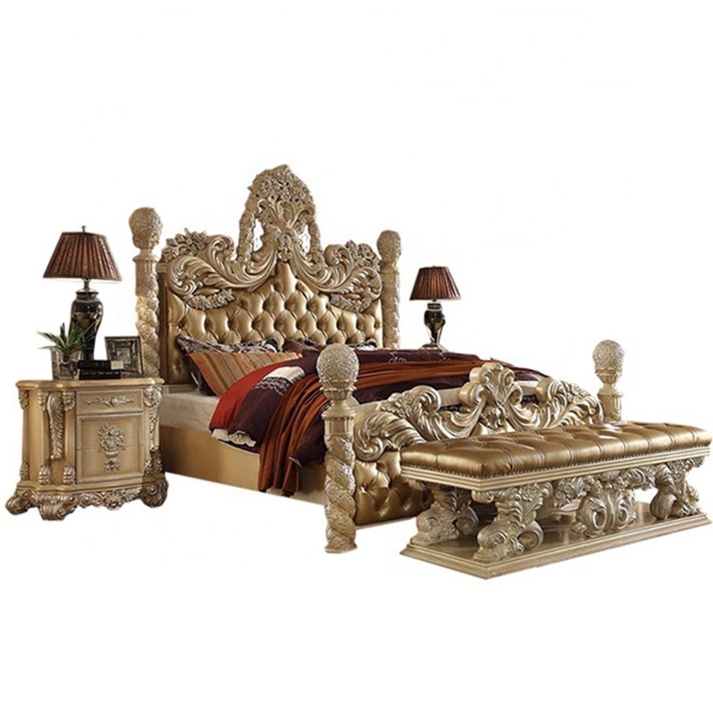 European Luxury Solid Wood Bed Leather Double French Log Carved Royal Princess Villa Dressing Table Baroque Bed