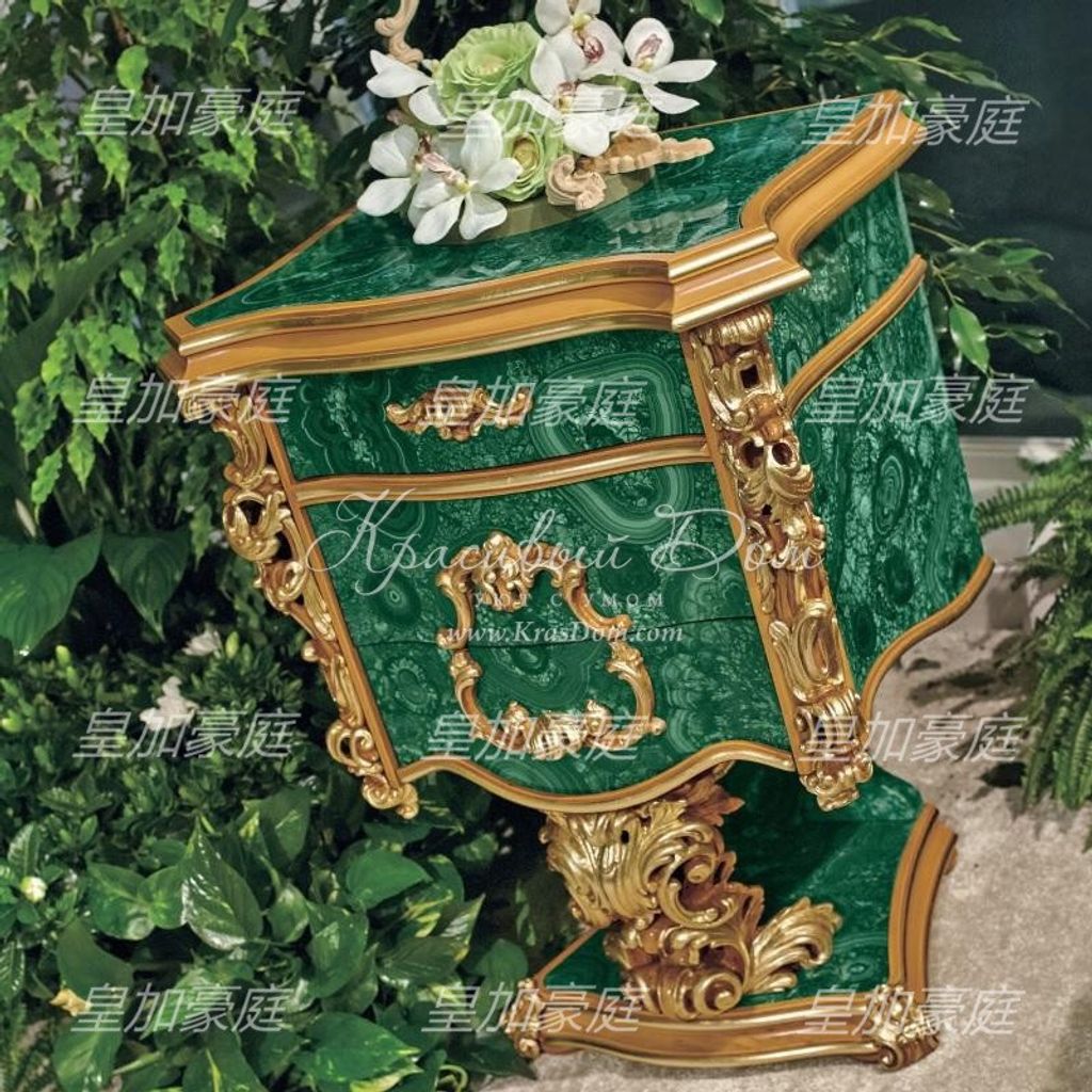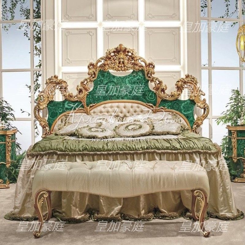 European Luxury Villa Custom Bedroom Furniture Imitation Green Marble Solid Wood Carved Master Bed 18m Double Bed