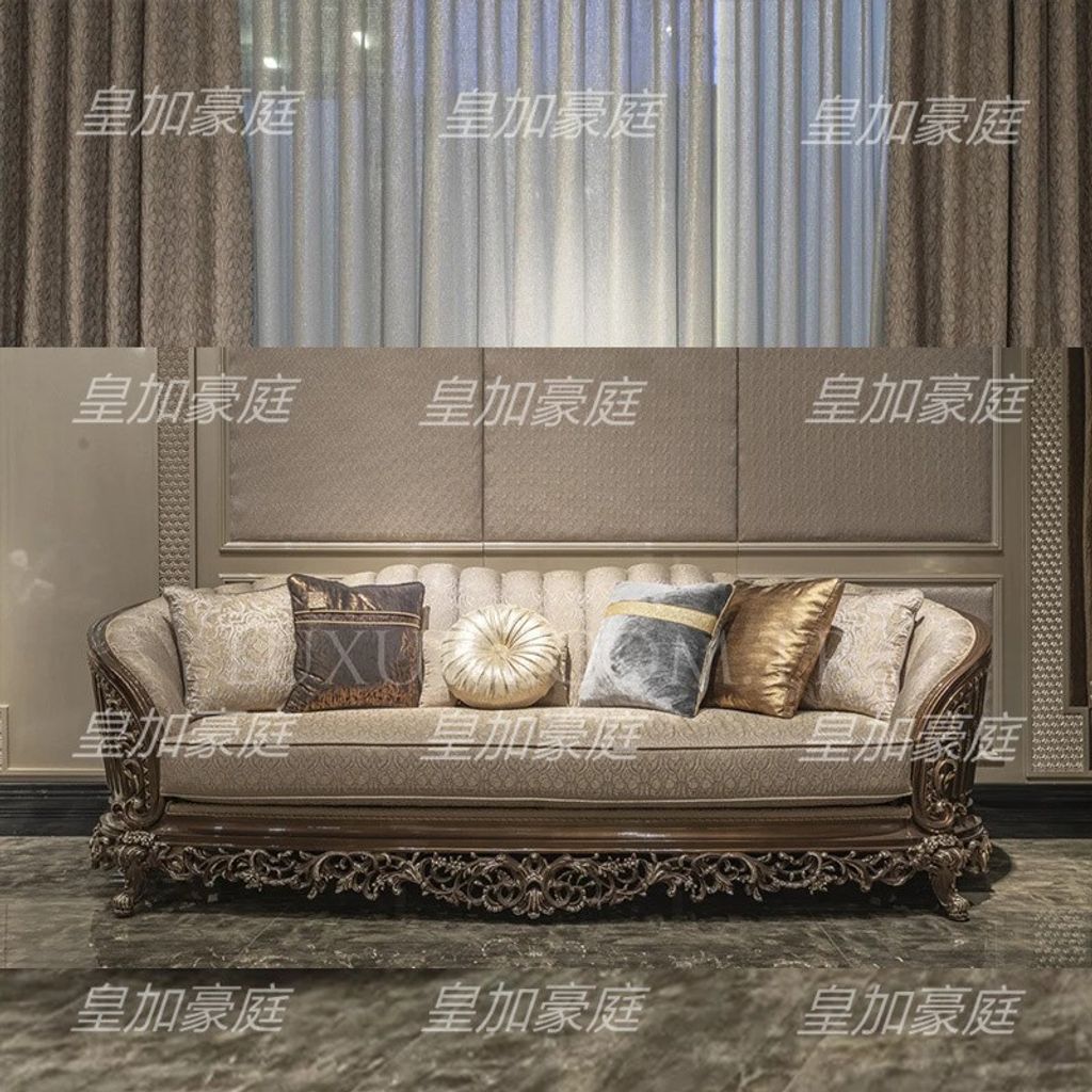 European Royal Luxury Solid Wood Carved Sofa High End Custom French Fabric Sofa Set Villa Living Room Furniture
