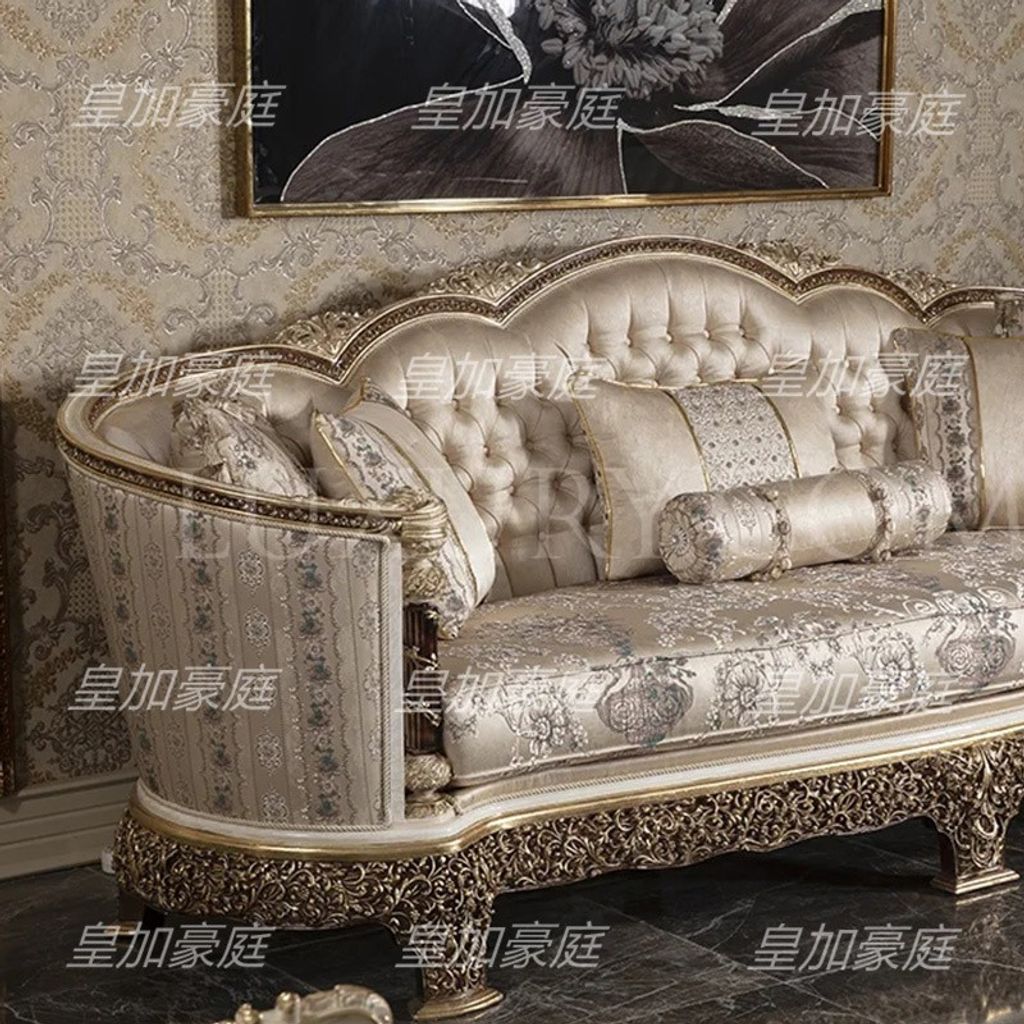European Sofa Set 123 Double Sided Solid Wood Carved Large Size Living Room Villa Luxury High End Custom Sofa