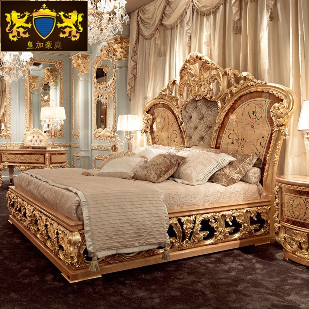 European Solid Wood Bed 18m Luxury Bedroom Double Bed Custom Fabric Master Bedroom Furniture Big Bed Wedding Bed Princess Bed