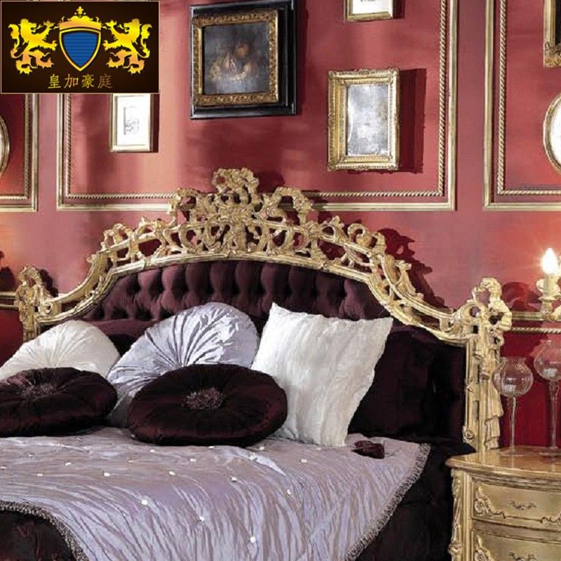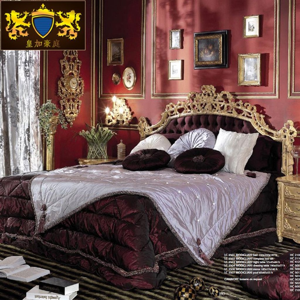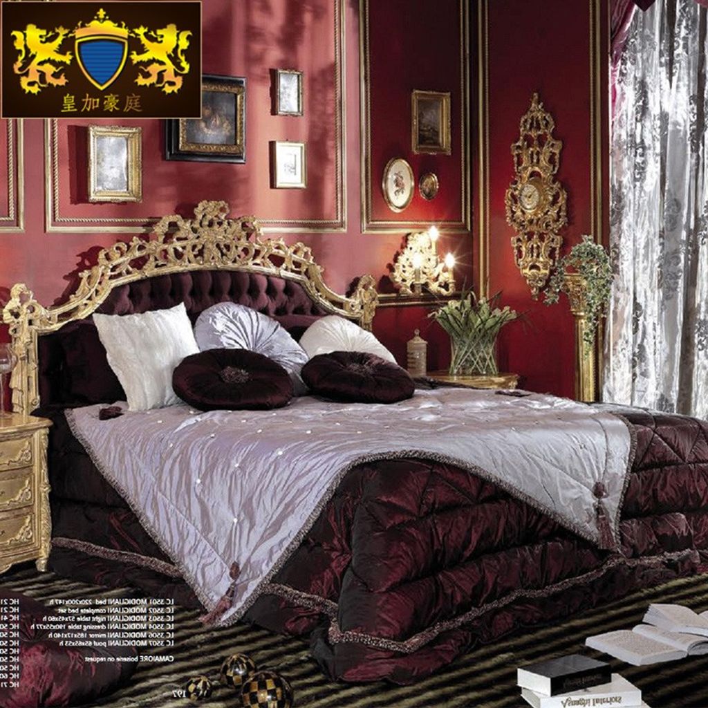 European Solid Wood Bed 2m Bedroom Furniture French Bed Double Bed Fashion Wedding Bed Carved Gold Traced Princess Bed 18m