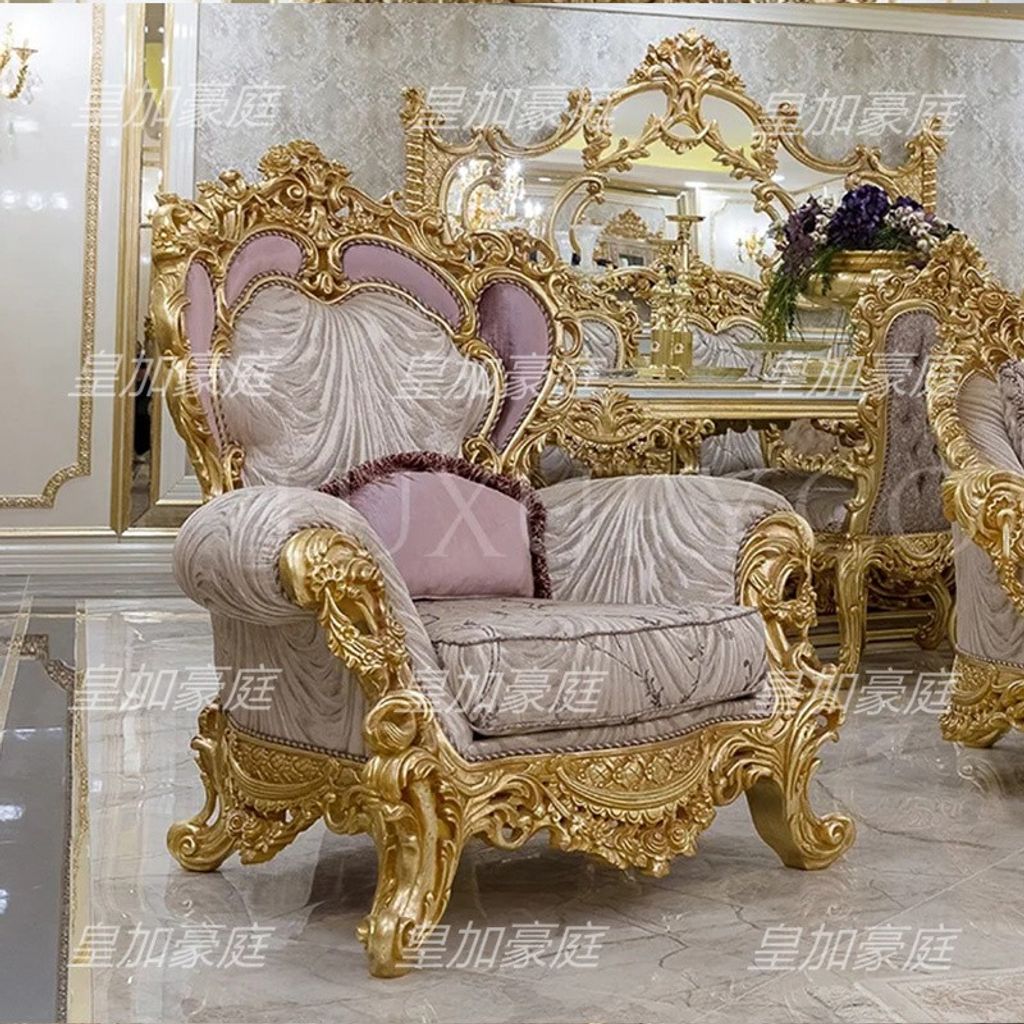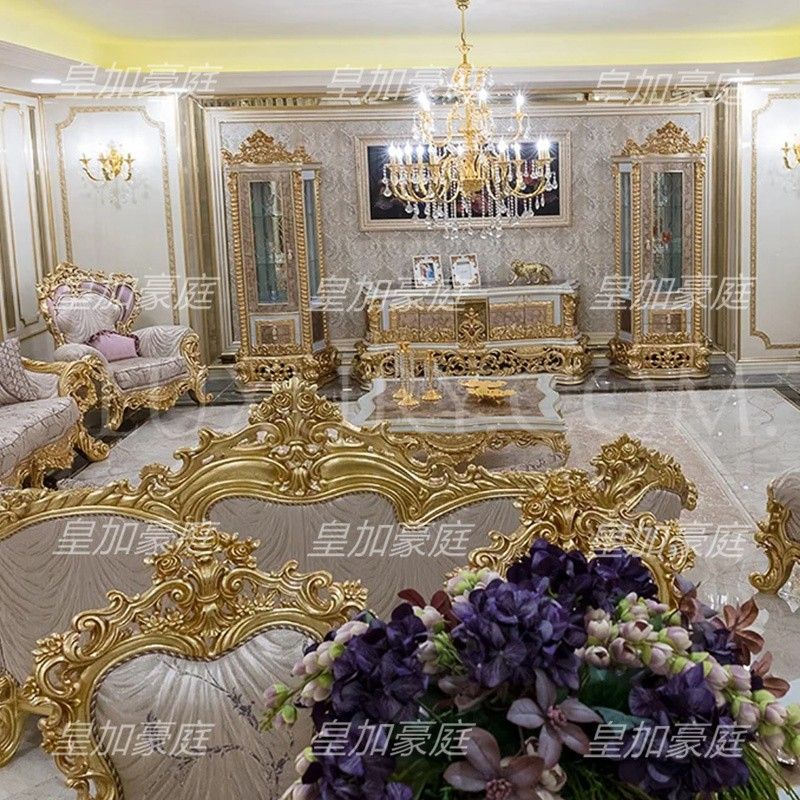 European Solid Wood Carved Fabric Sofa Set French Royal Villa Living Room Gold Sofa High End Custom Furniture