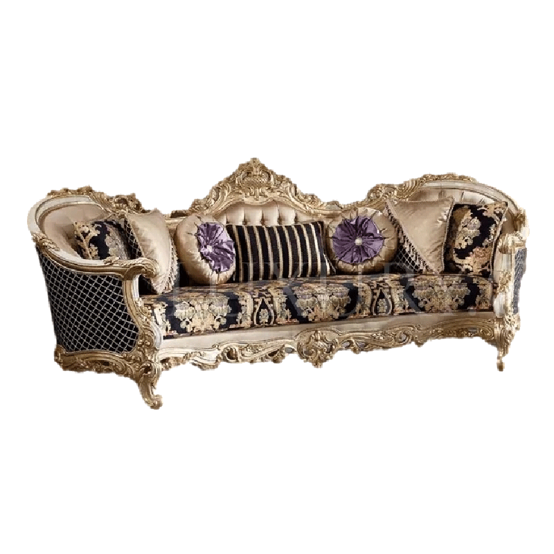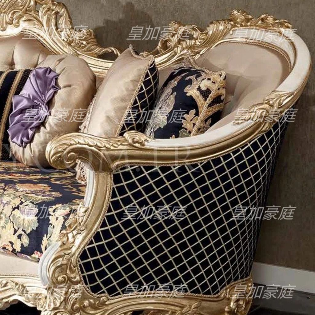 European Solid Wood Sofa Carved Living Room Set Large Size Villa Furniture French Fabric Sofa High End Custom