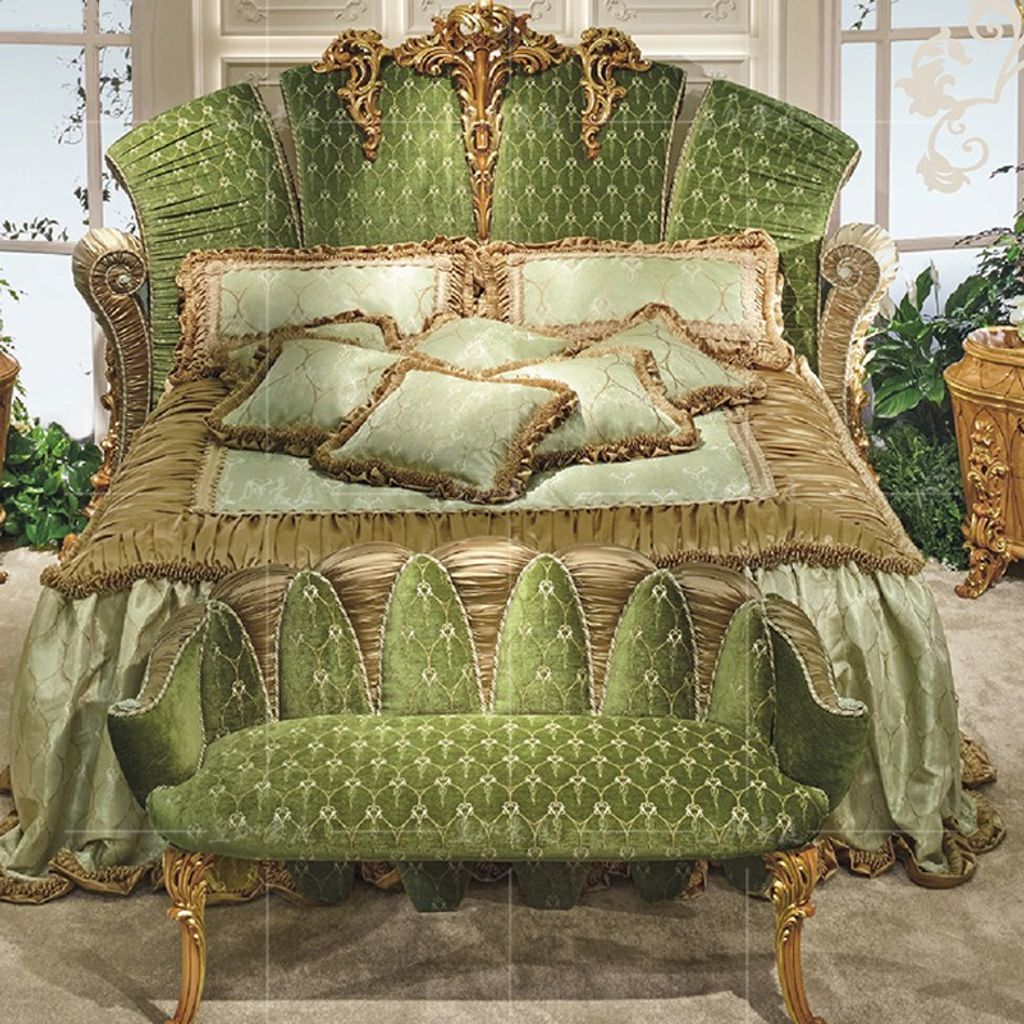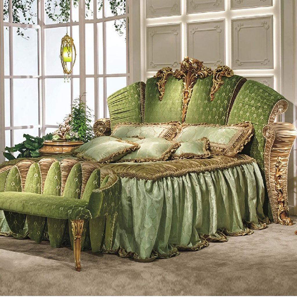 Green Bed Master Princess Bed French Hand Carved Villa Large Size Furniture European Solid Wood Wedding Bed Custom