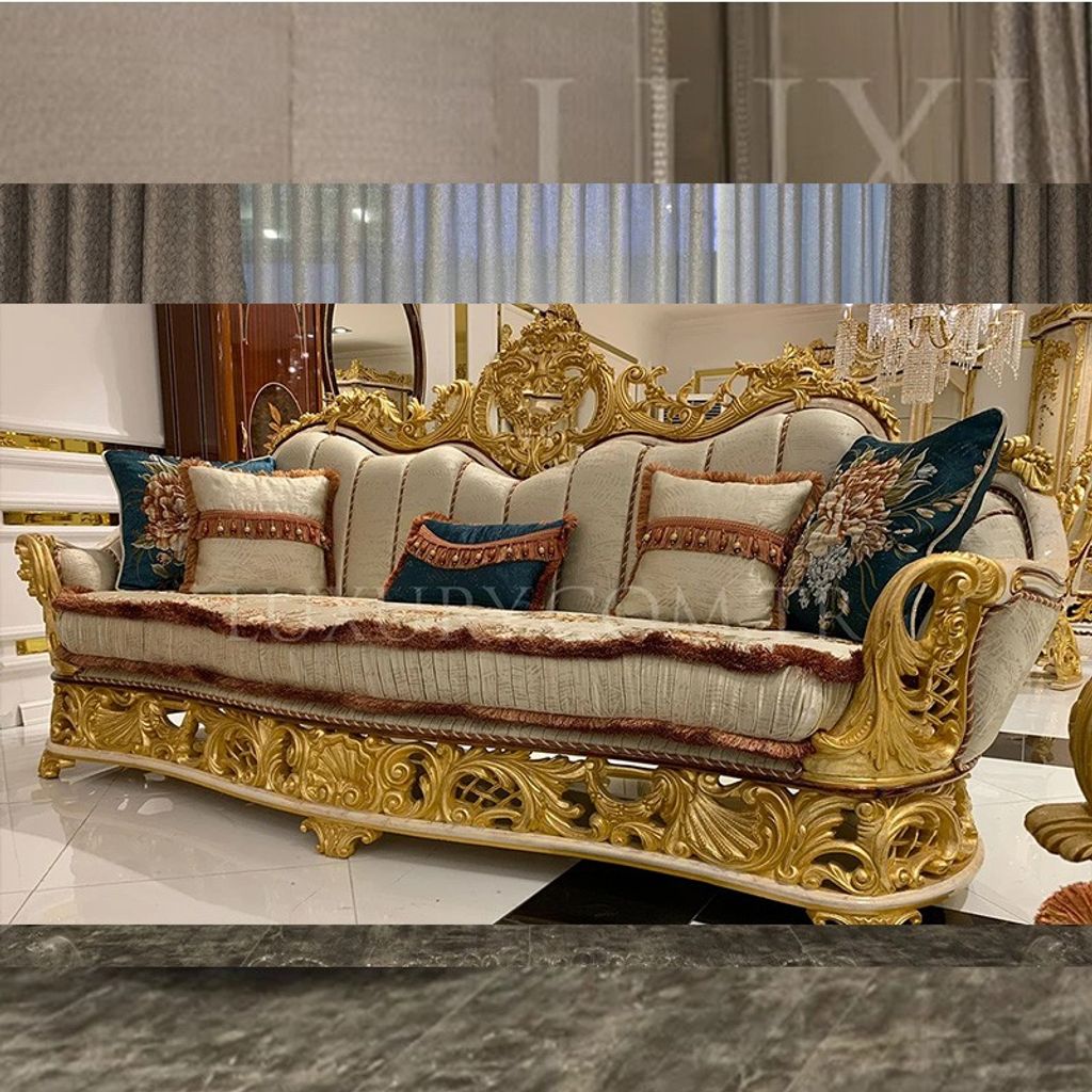 Italian French Solid Wood Sofa Large Size High End Furniture Custom European Royal Villa Fabric Sofa Set