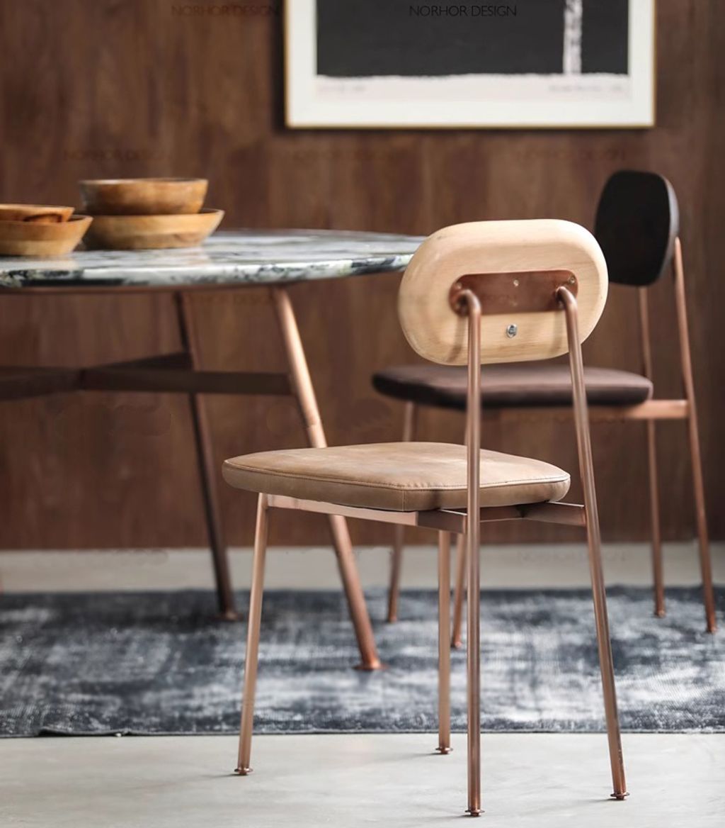 Italian Minimalist Solid Wood, Genuine Leather and Fabric Dining Chair French B.N.YUT Nordic Style Light Luxury Designer Backrest Chair