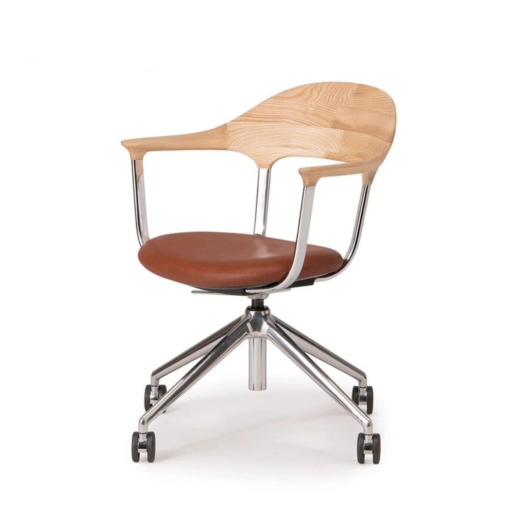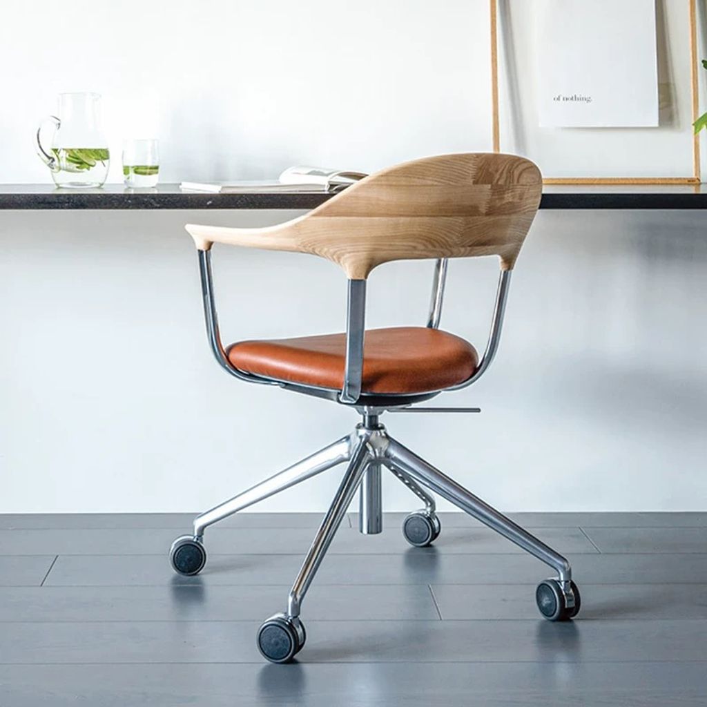 Italian Minimalist Solid Wood Study Chair Four chair Chairs Designer Stainless Steel Caster Office Chair