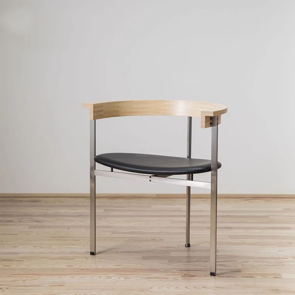 Italian Minimalist Stainless Steel Dining Chair Minimalist Solid Wood Study Chair Meeting Chair Designer Creative Backrest Home Dining Table Chair