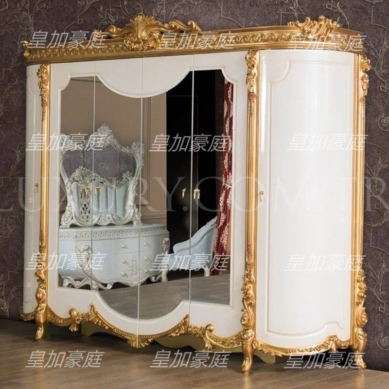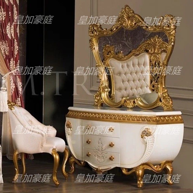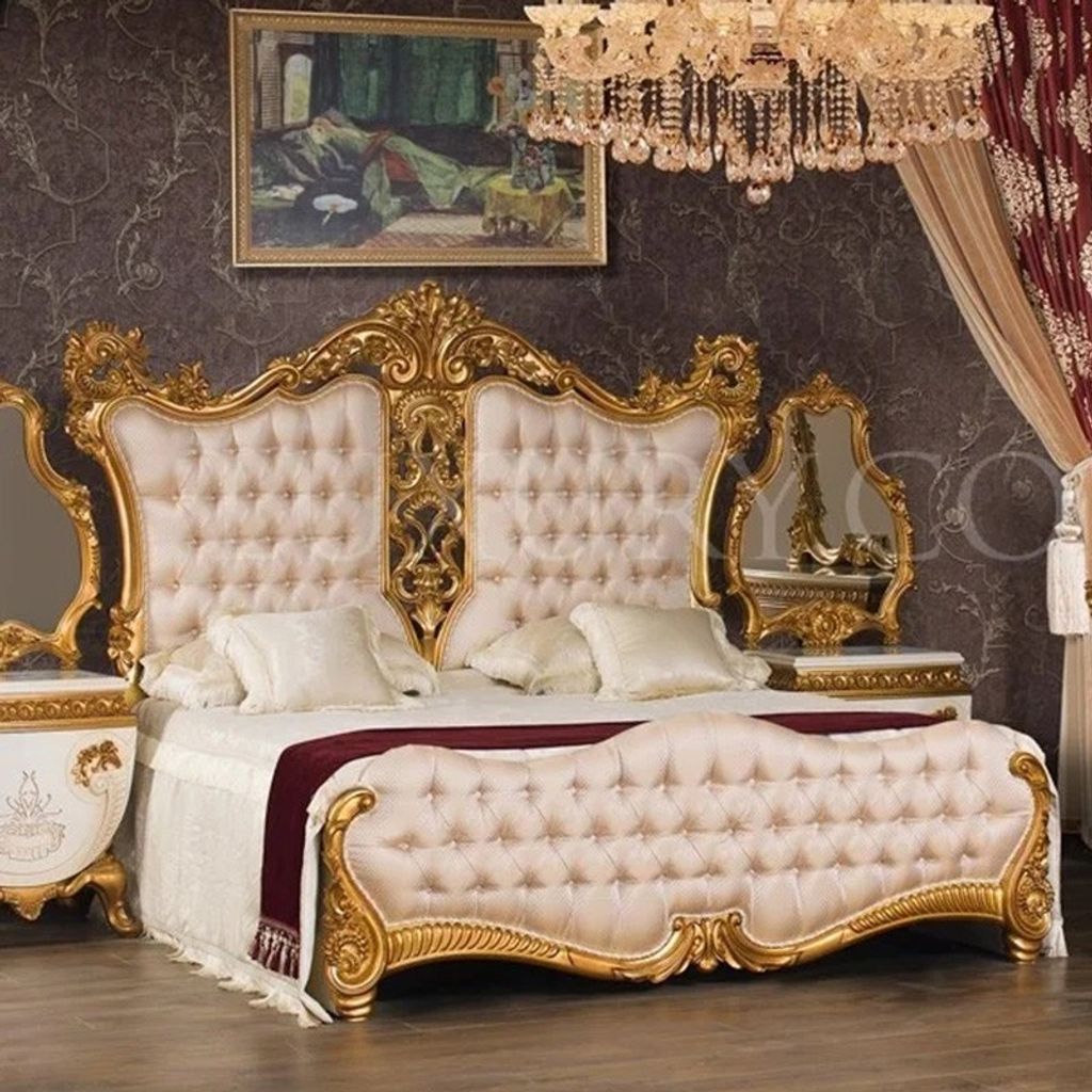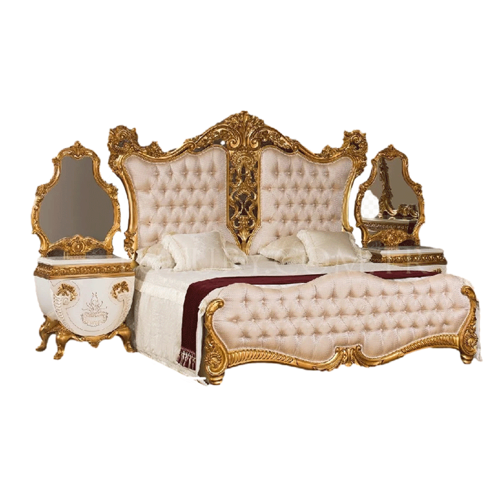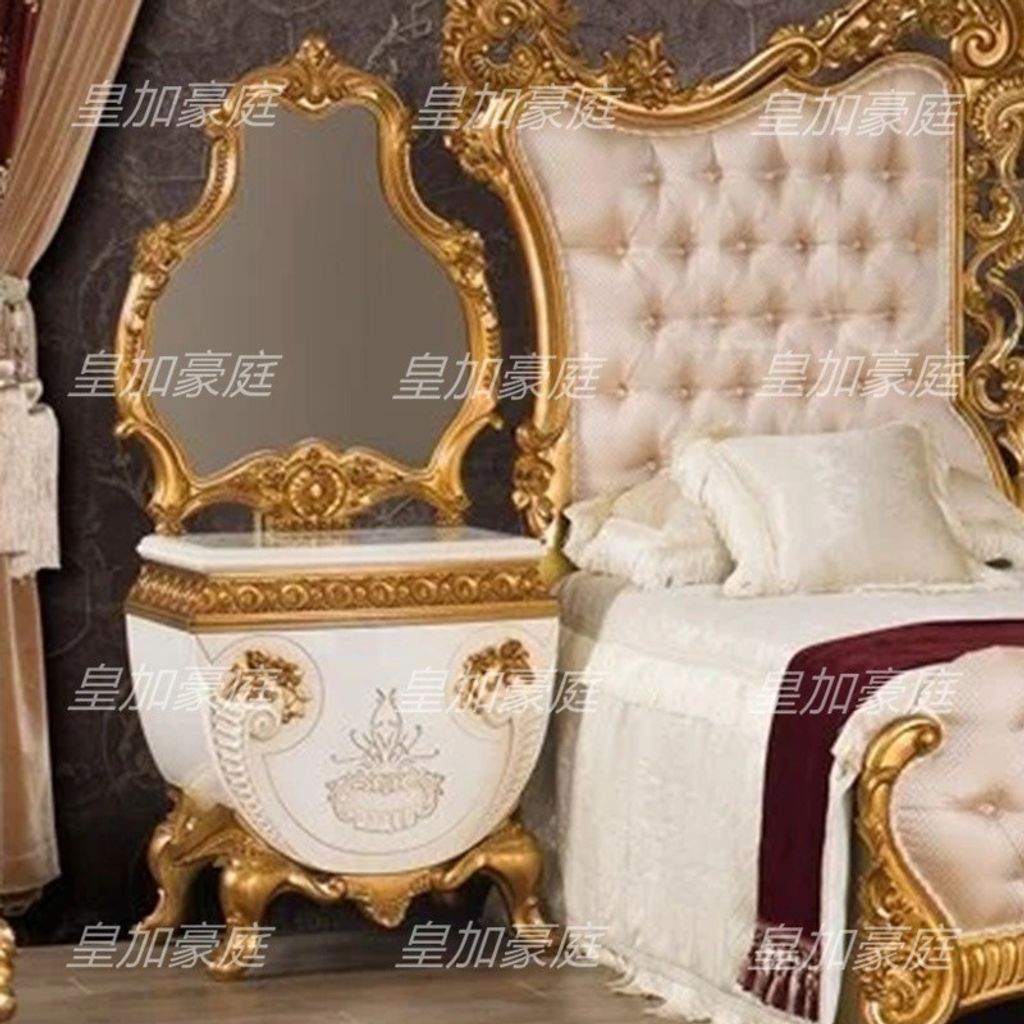 Italian Royal Bed Luxury Solid Wood Carved Double Bed Villa Master Bed 18m 2m Gold Fabric Wedding Bed
