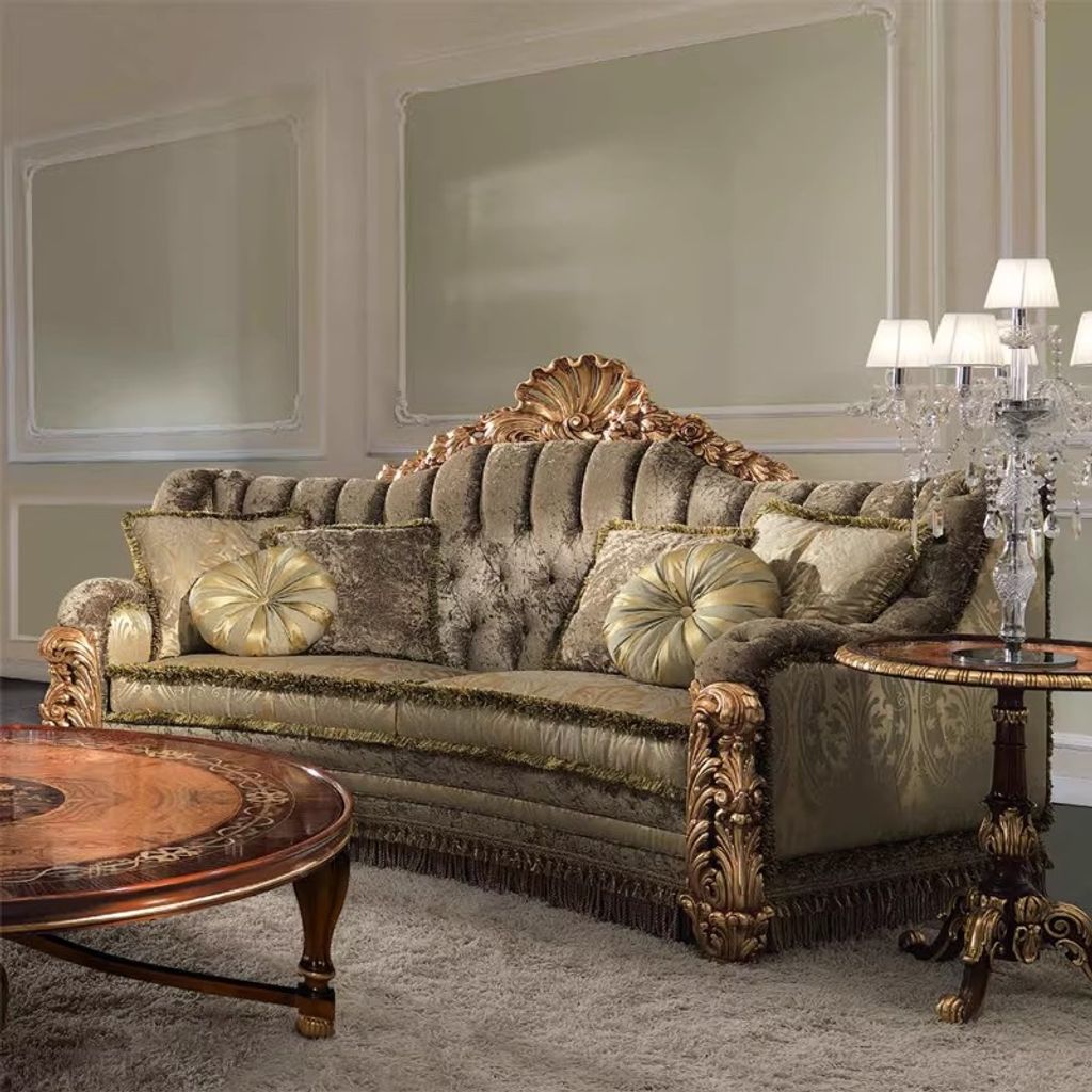 Italian Sofa Villa Living Room Royal Whole Set European Luxury Retro Solid Wood Carved French Fabric Sofa Custom