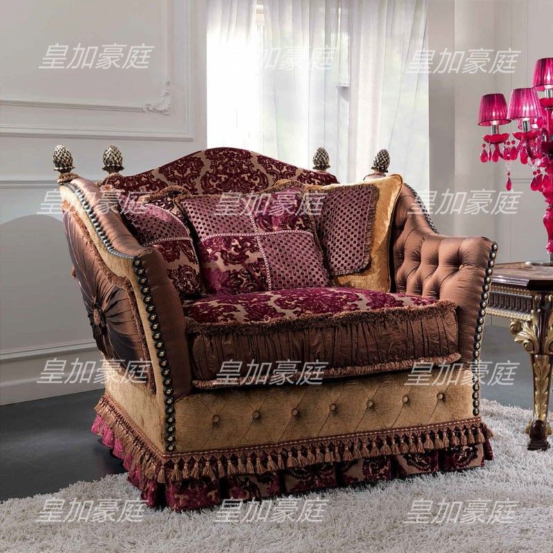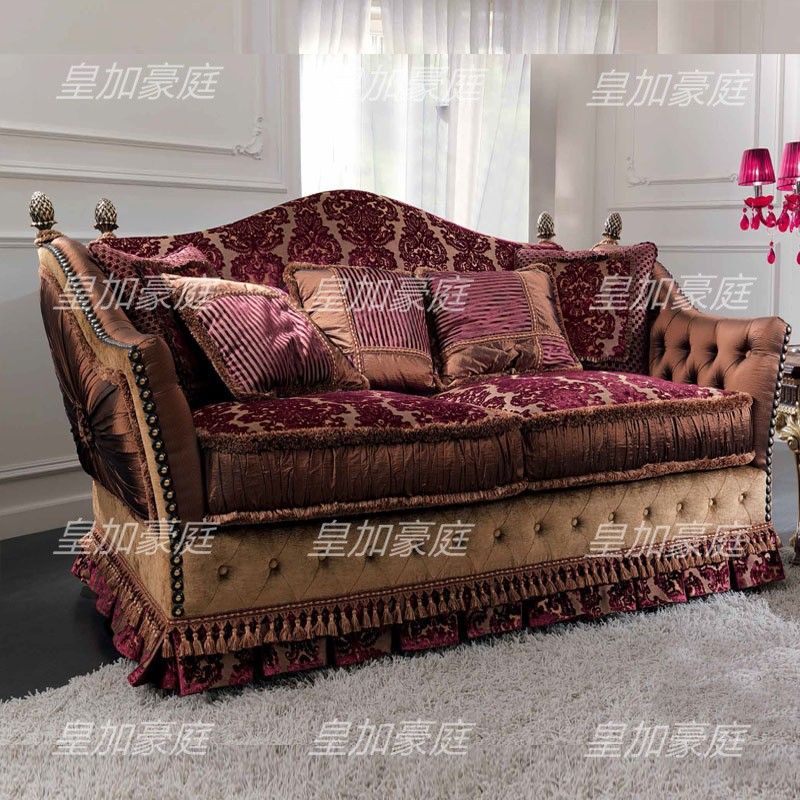 Italian Solid Wood Sofa Set Villa Living Room Furniture Large Size Carved Luxury Retro Fabric Sofa Custom