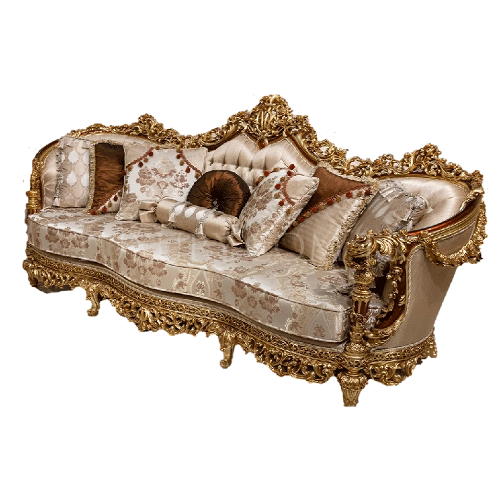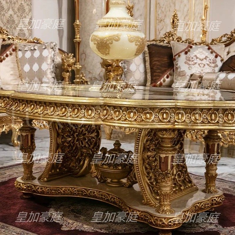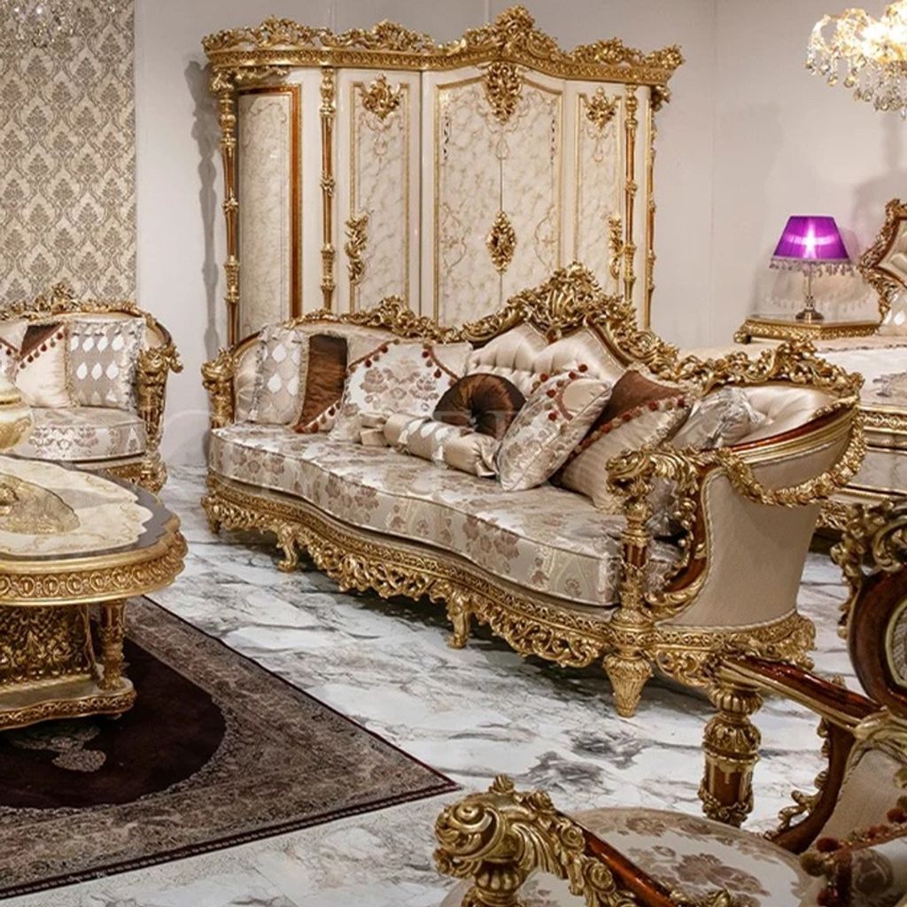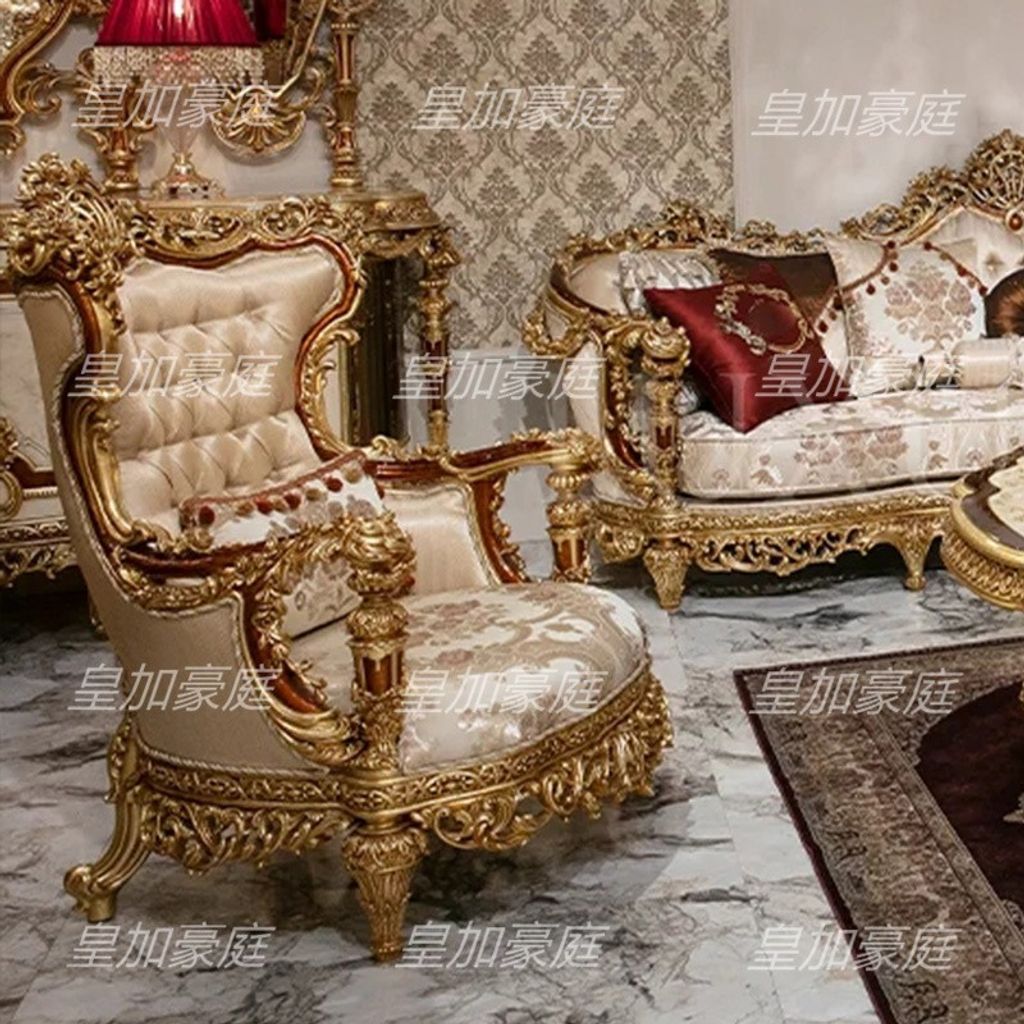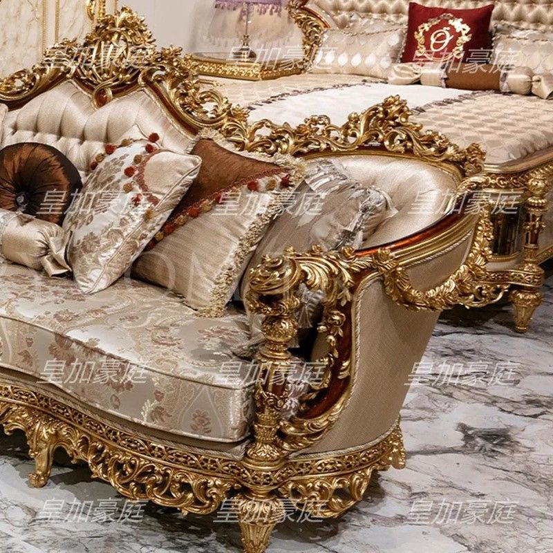 Italian Villa Living Room Furniture Custom French Royal Luxury Solid Wood Carved Gold Fabric Sofa Set