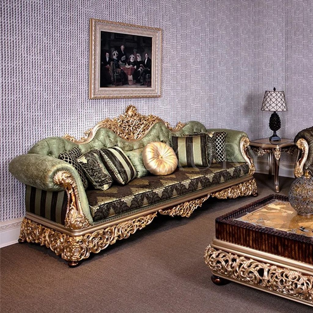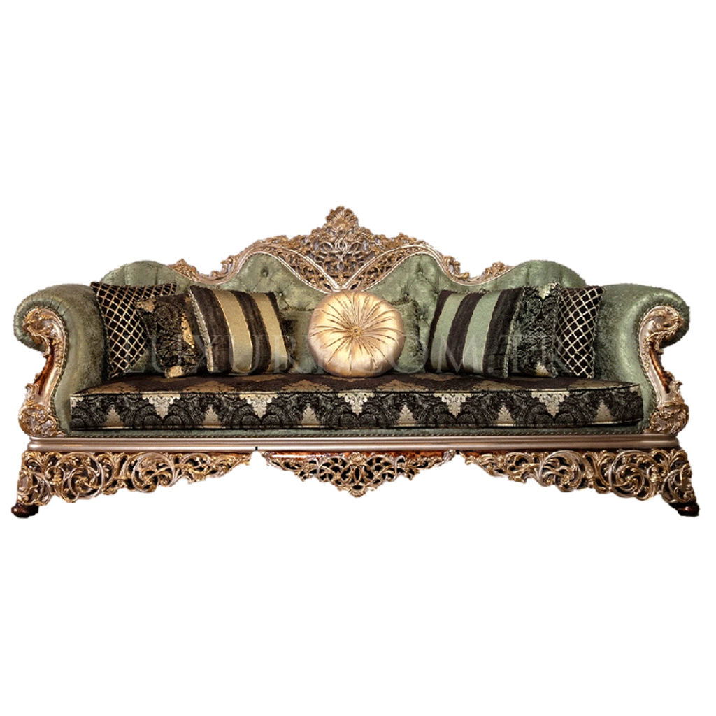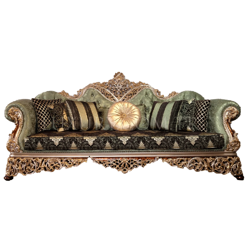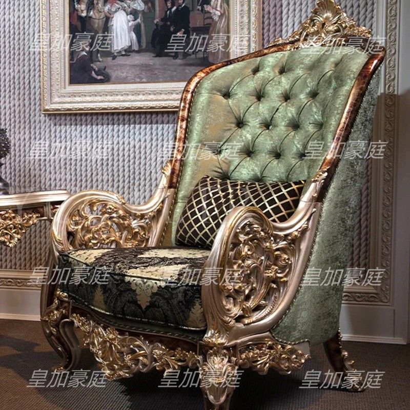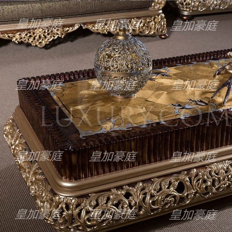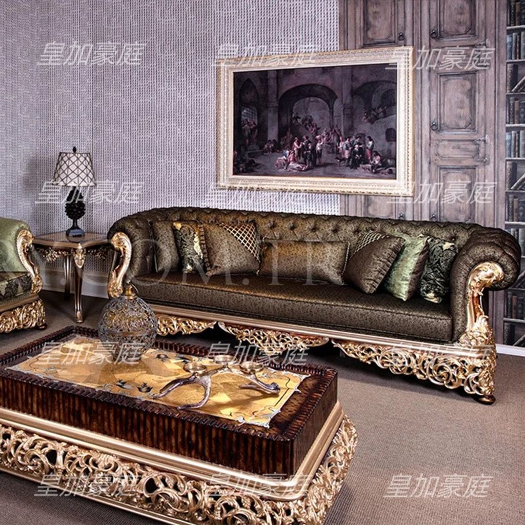 Luxury European Solid Wood Fabric Sofa French Royal Carving Gold Large Size Villa Living Room Furniture Custom