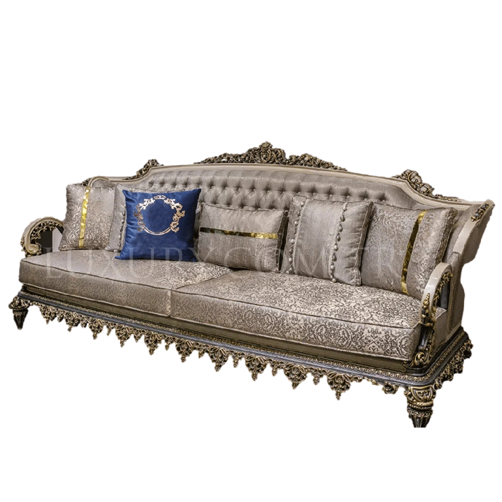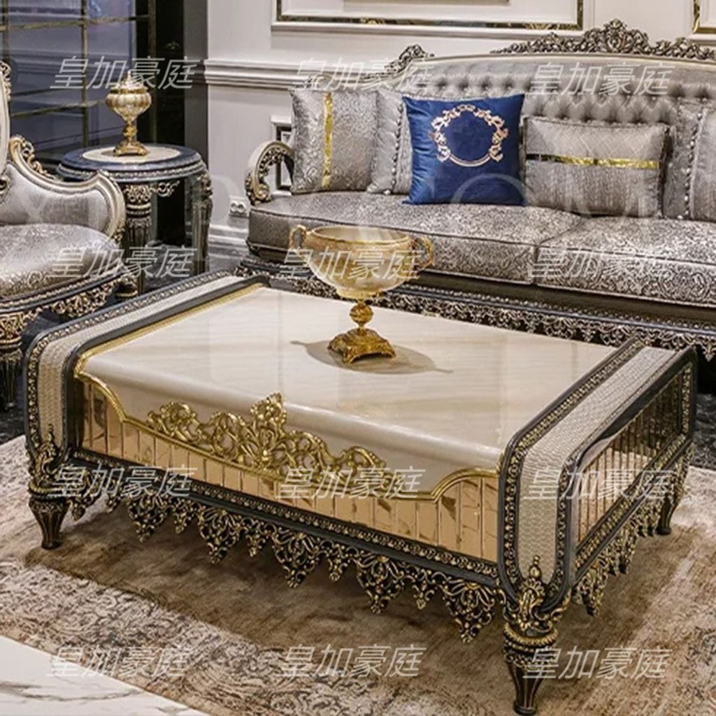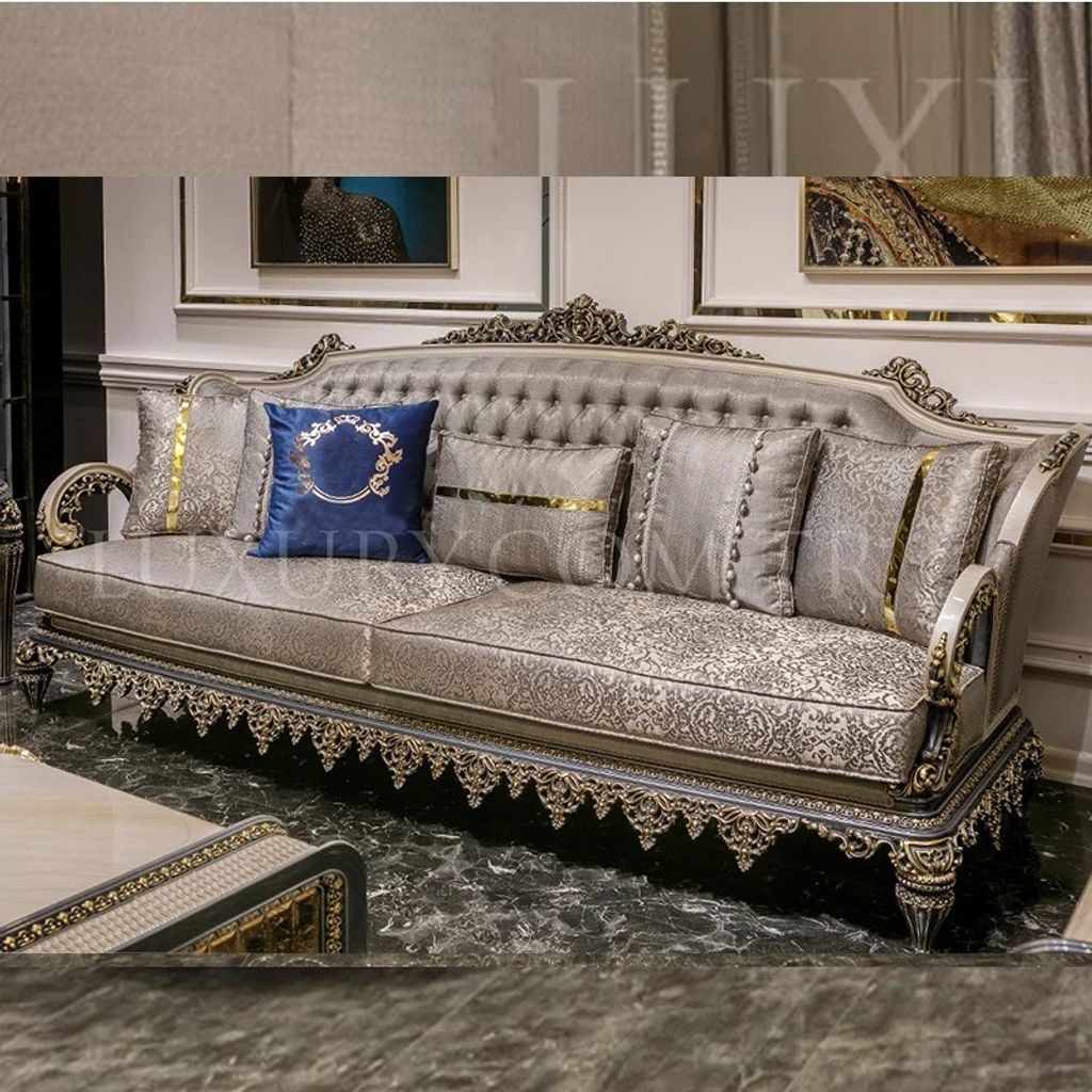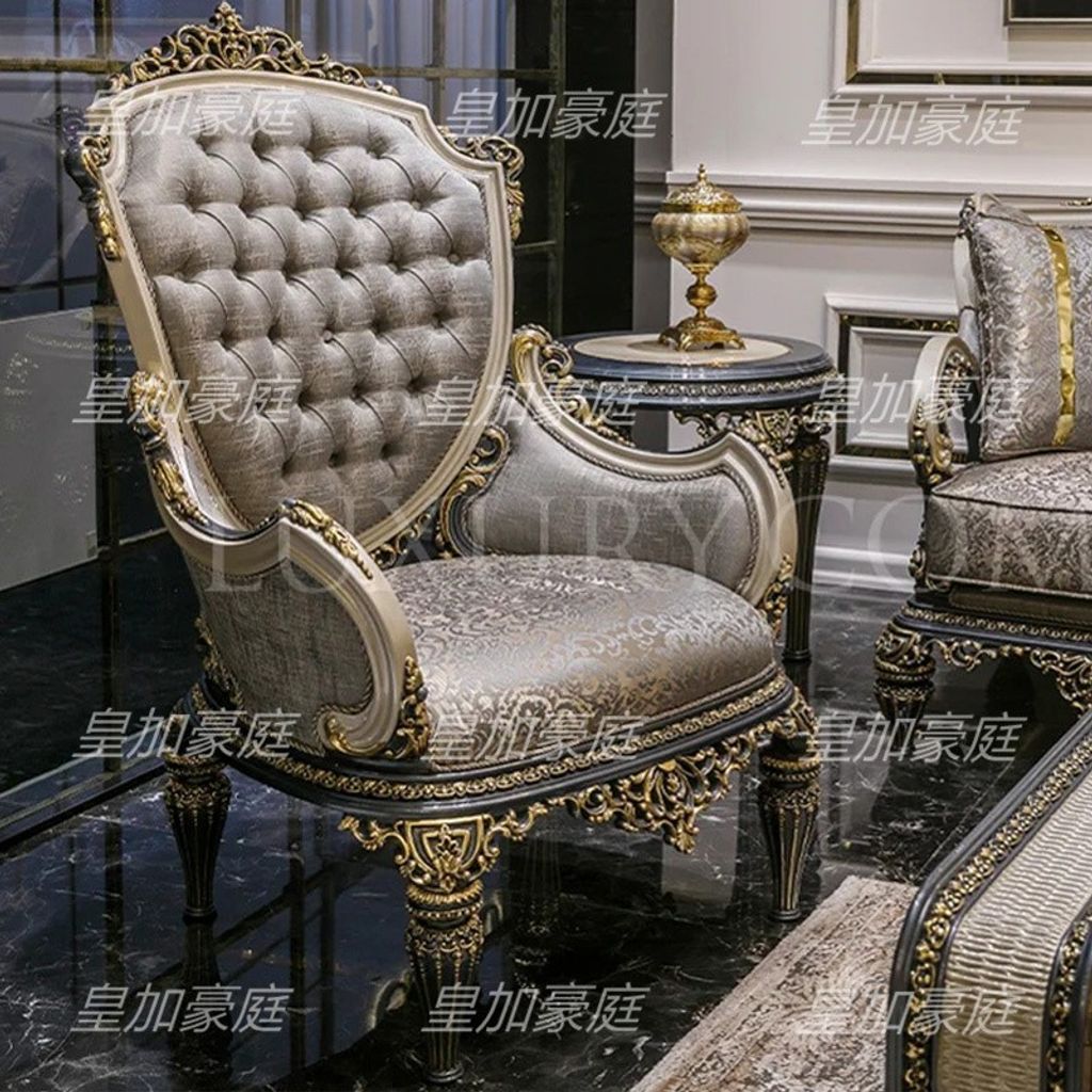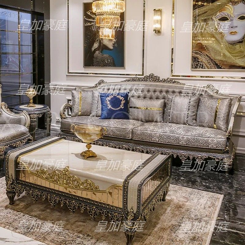 Luxury European Solid Wood Fabric Sofa Set 123 French Royal Carving Large Size Villa Living Room Furniture