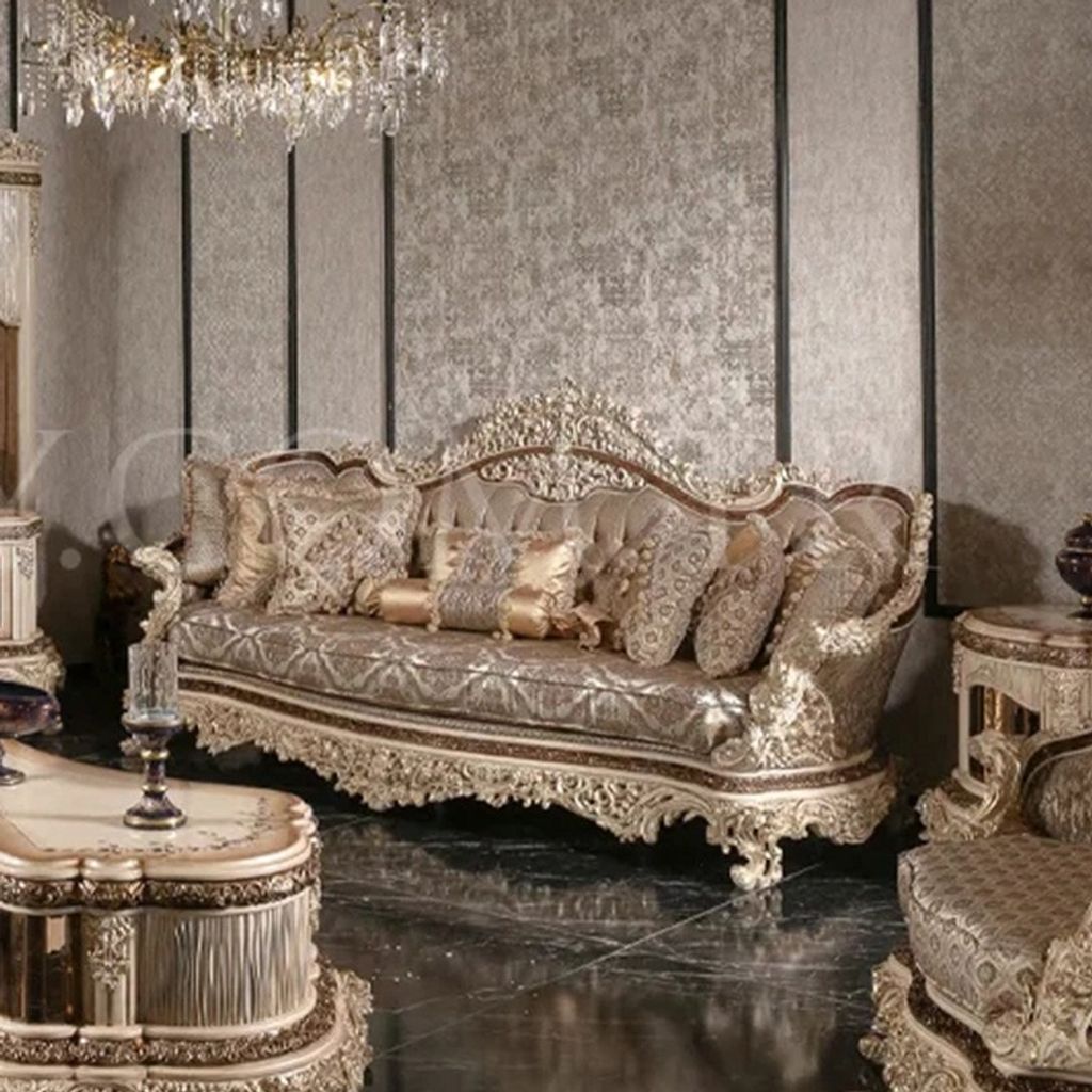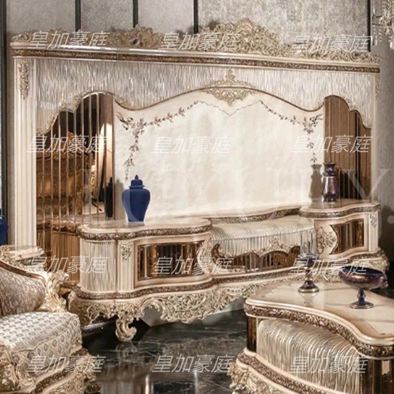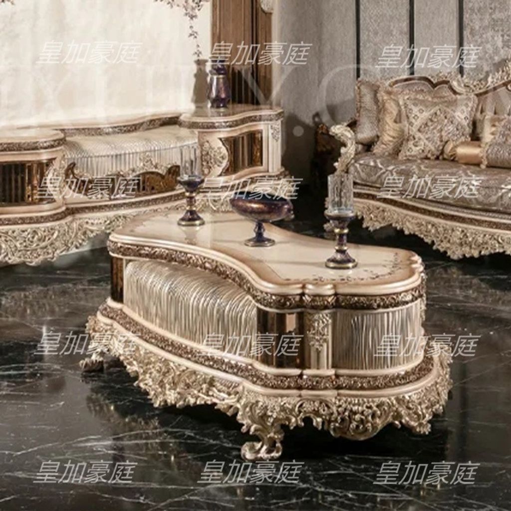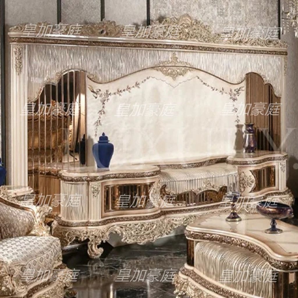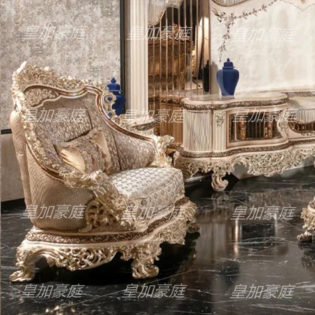 Luxury European Solid Wood Sofa French Royal Carving Champagne Color Large Size Villa Living Room Furniture Handmade Custom