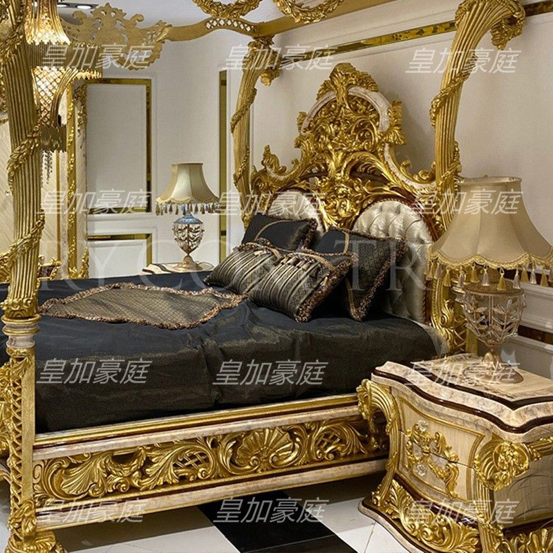 Royal Majesty Custom European Poster Bed Solid Wood Hand Carved Luxury Royal Master Double Bed Big Bed