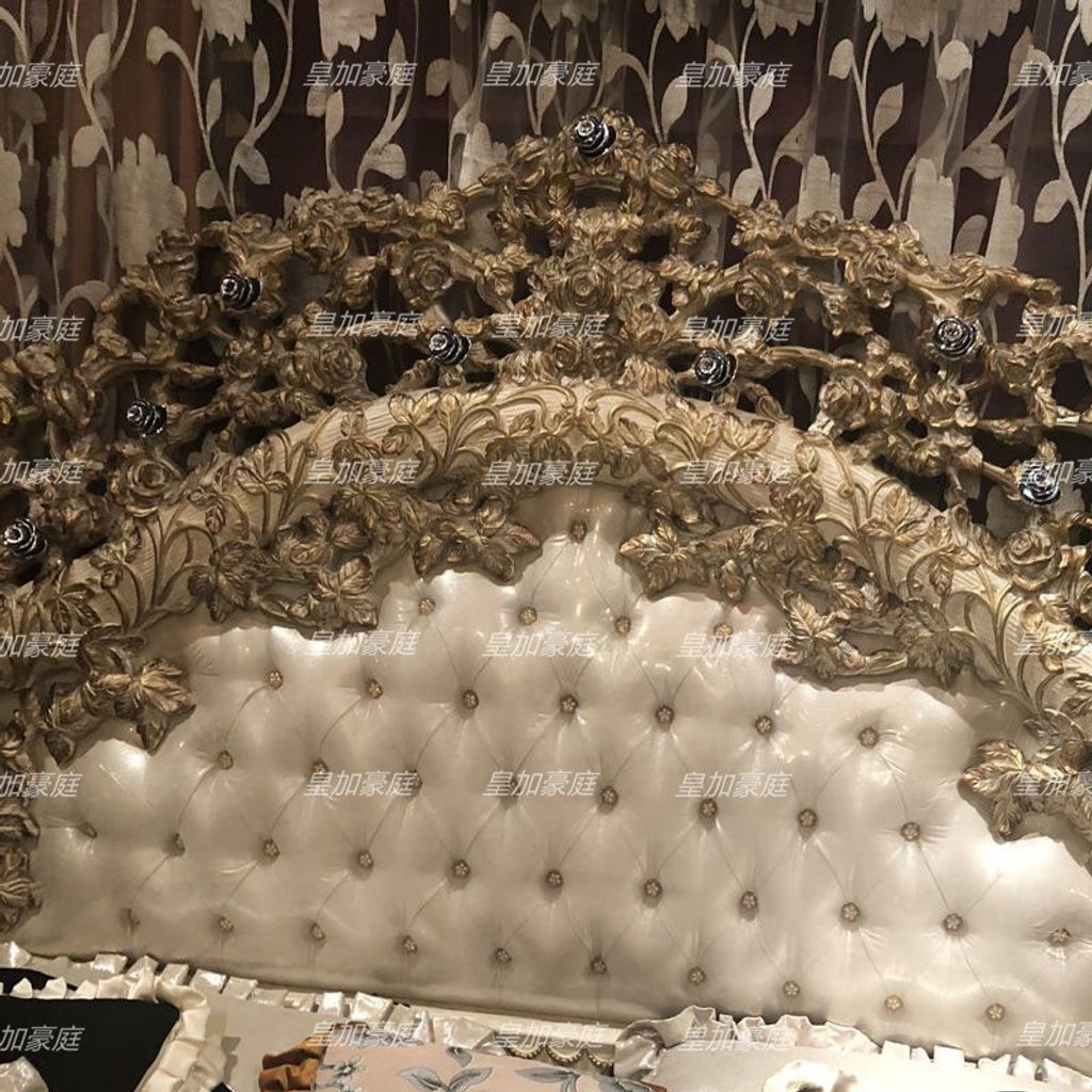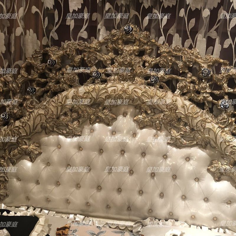 Royal Majesty European Leather Bed Villa Royal Solid Wood Master Bed French Luxury Carved Double Bed Wedding Bed