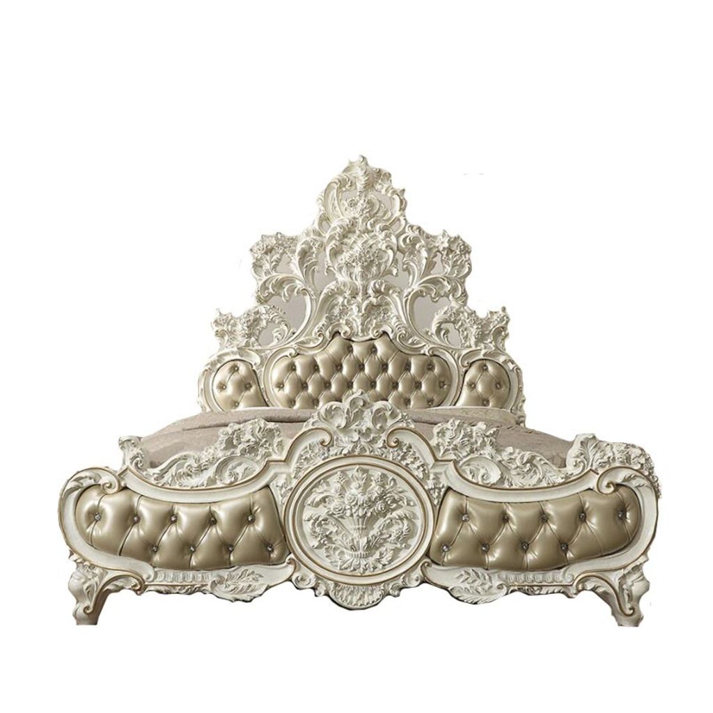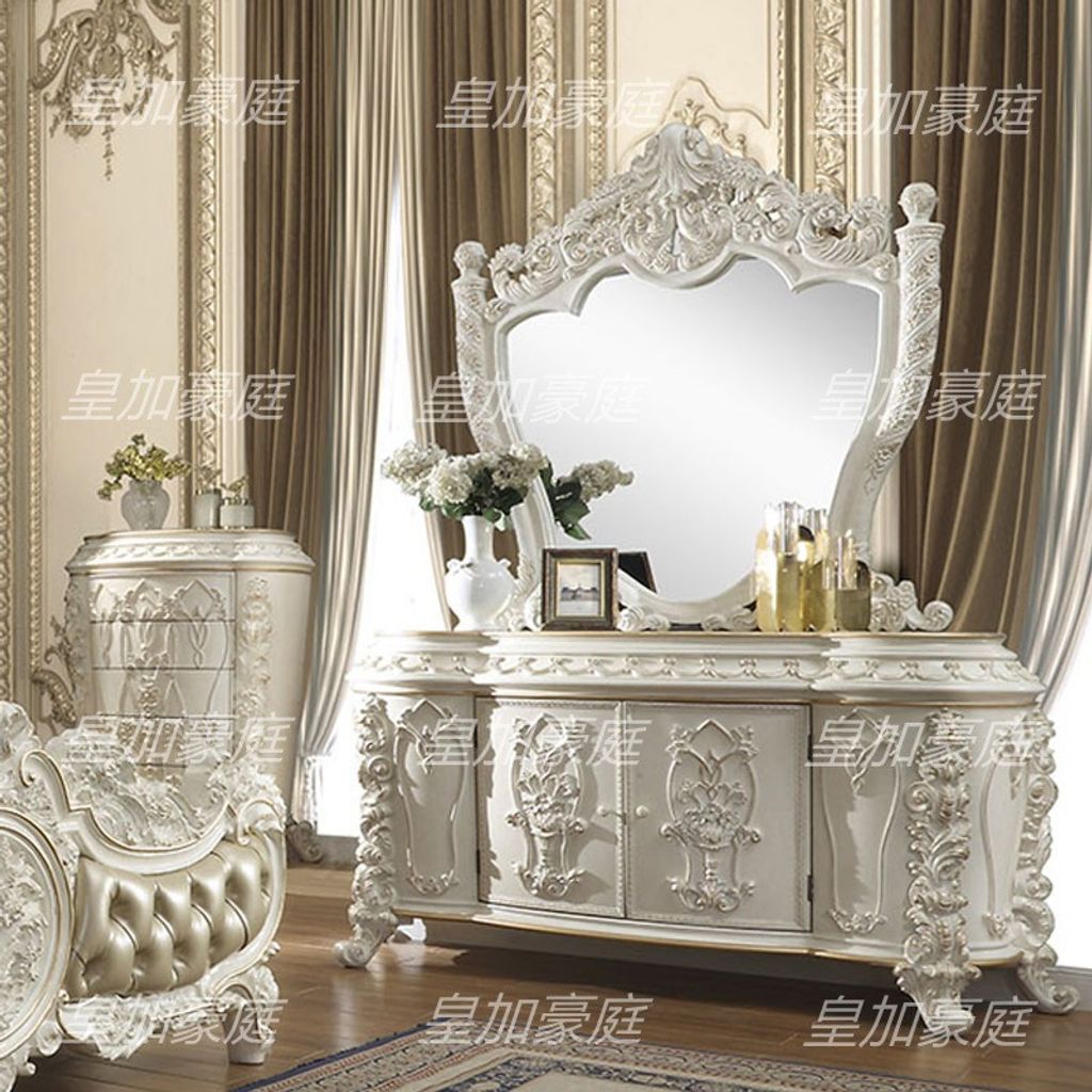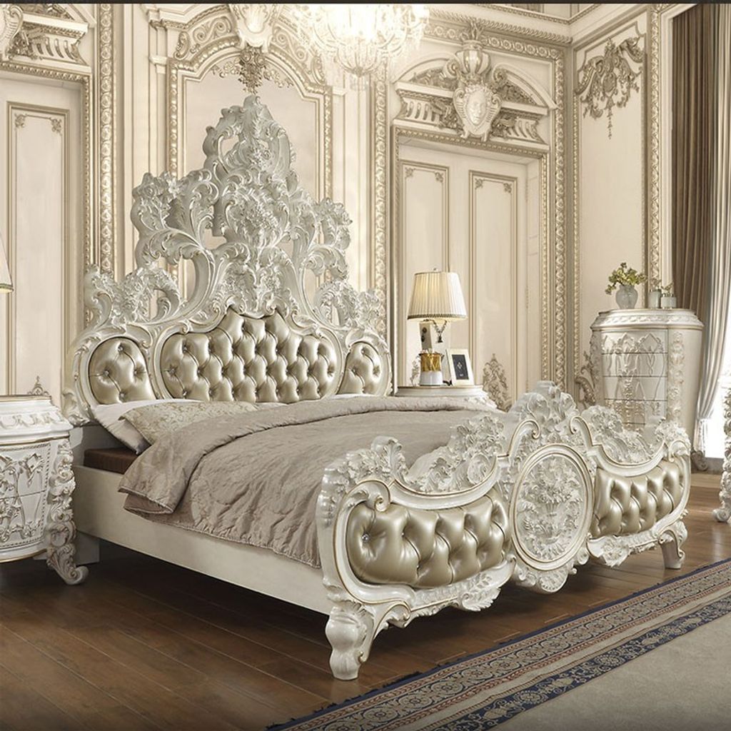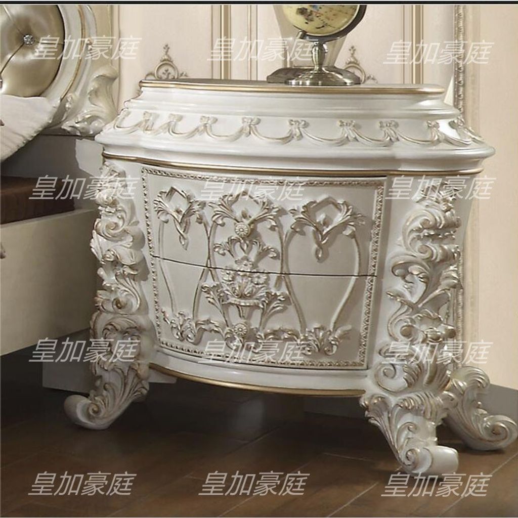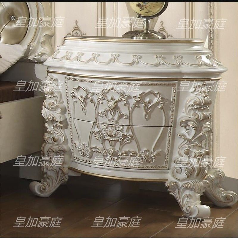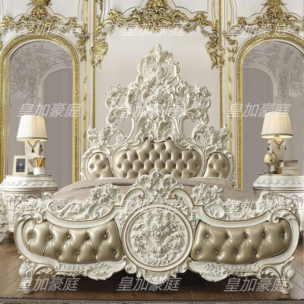 Royal Majesty European Luxury Solid Wood Carved Leather Bed White Royal Master Wedding Bed Villa Furniture Custom