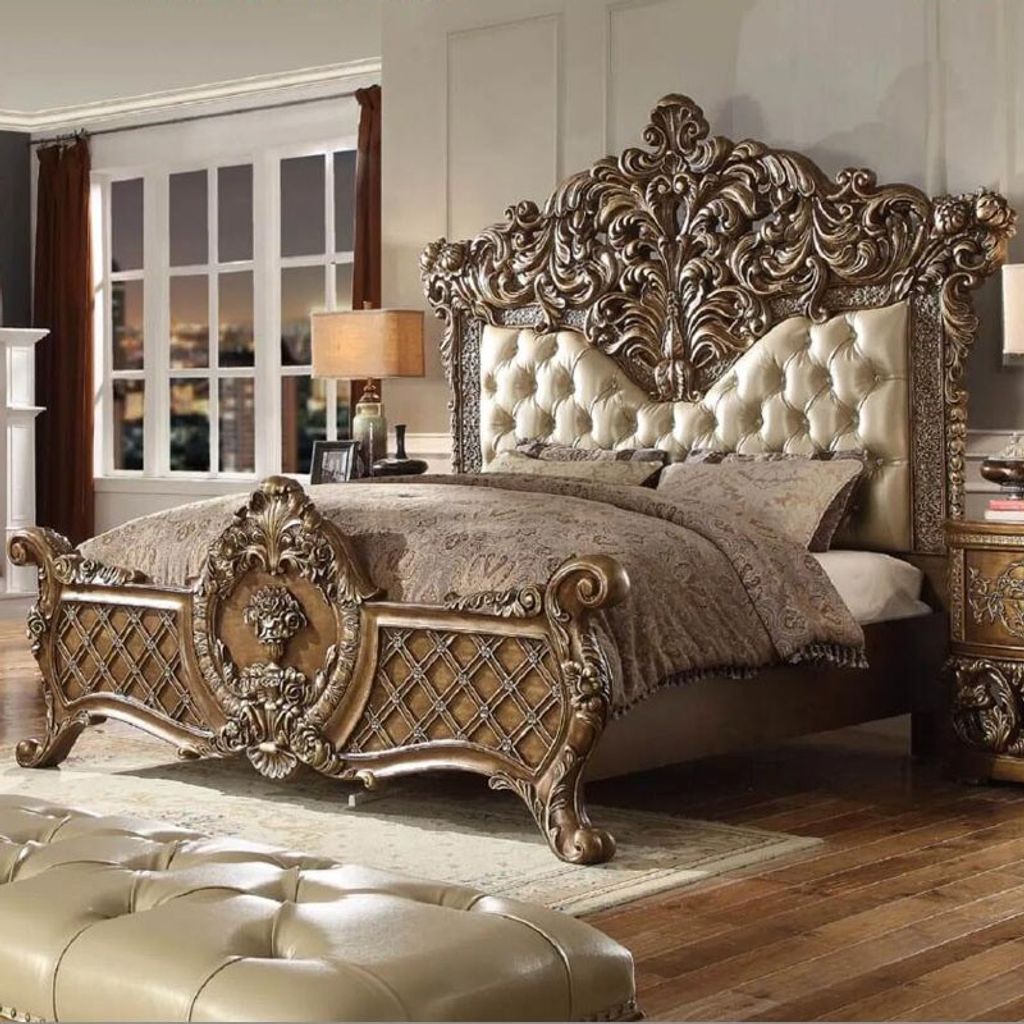 Royal Majesty European Master Bed Italian Luxury Royal Furniture Carved Luxury Leather Bed Villa Custom