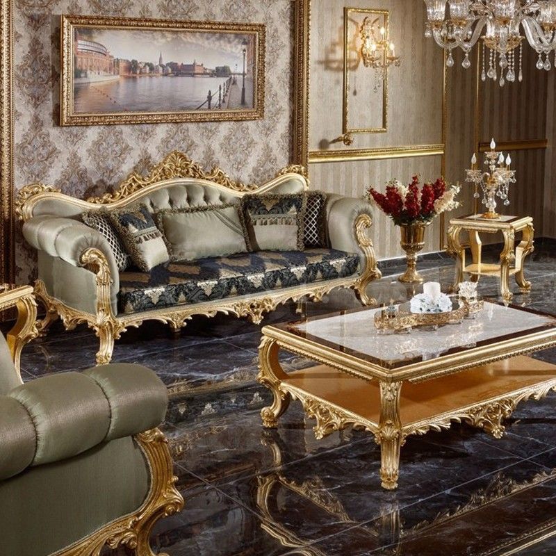 Royal Majesty European Sofa Set Living Room Furniture Custom Luxury Solid Wood Luxury Sofa Villa Whole Set