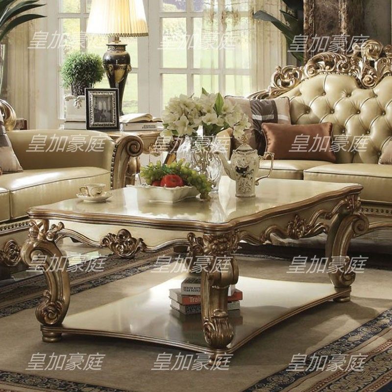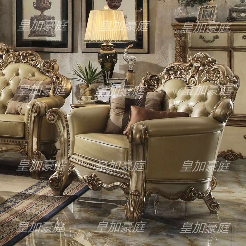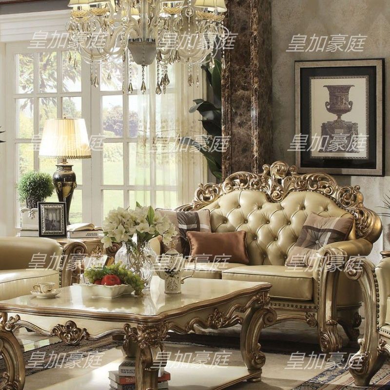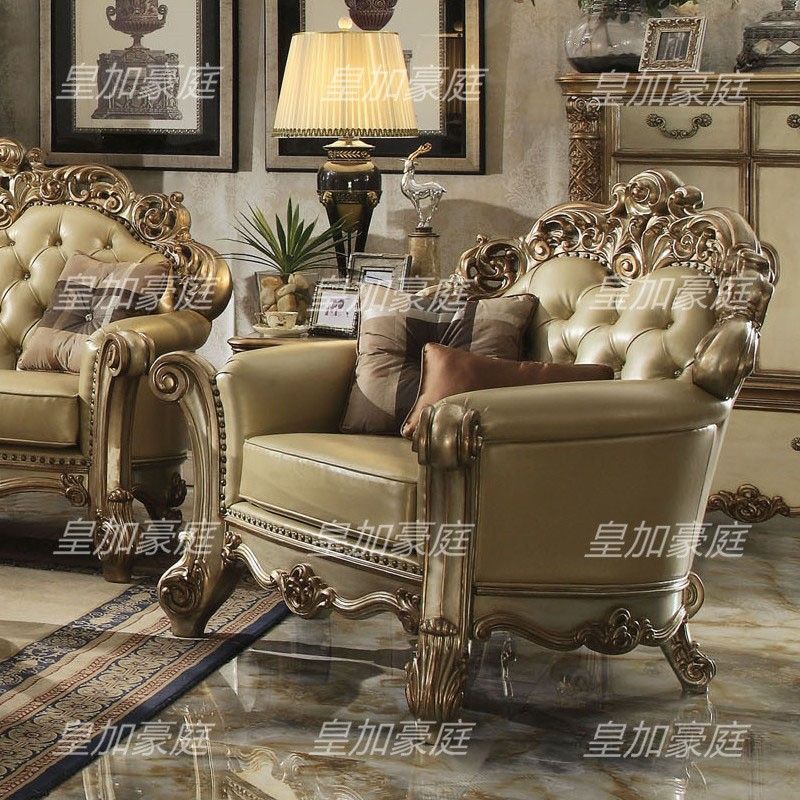 Royal Majesty European Solid Wood Carved Large Size Sofa Luxury Living Room Leather Sofa Villa Custom