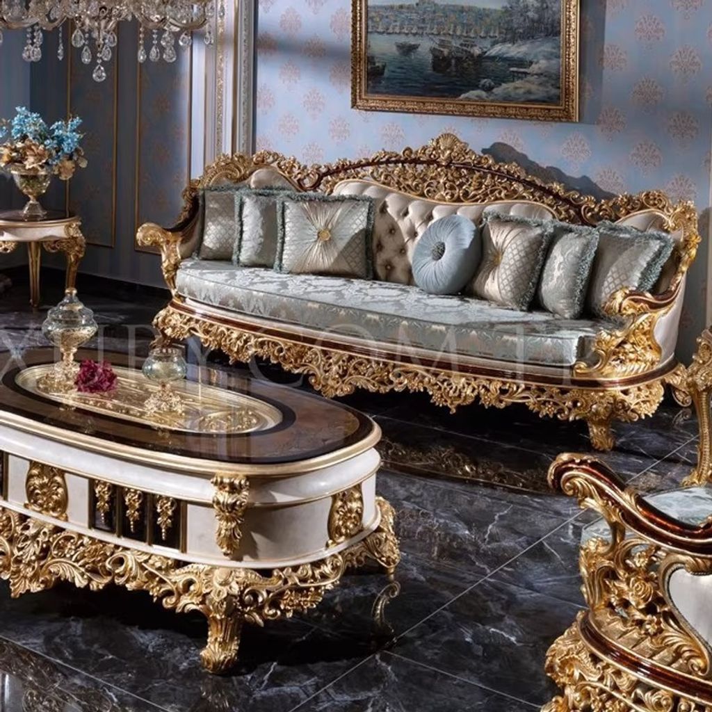 Royal Majesty European Solid Wood Carved Sofa Villa Living Room Luxury Large Size Fabric Sofa Set Custom