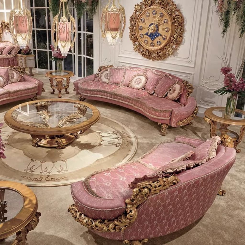 Royal Majesty Italian Solid Wood Sofa Large Size Royal Villa European Fabric Sofa Living Room Set