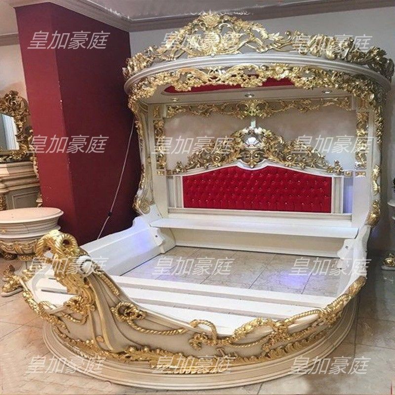 Boat Shaped Bed European Villa Bedroom Furniture Large Size Pirate Ship Bed Solid Wood Carved 18m Fabric Double Bed