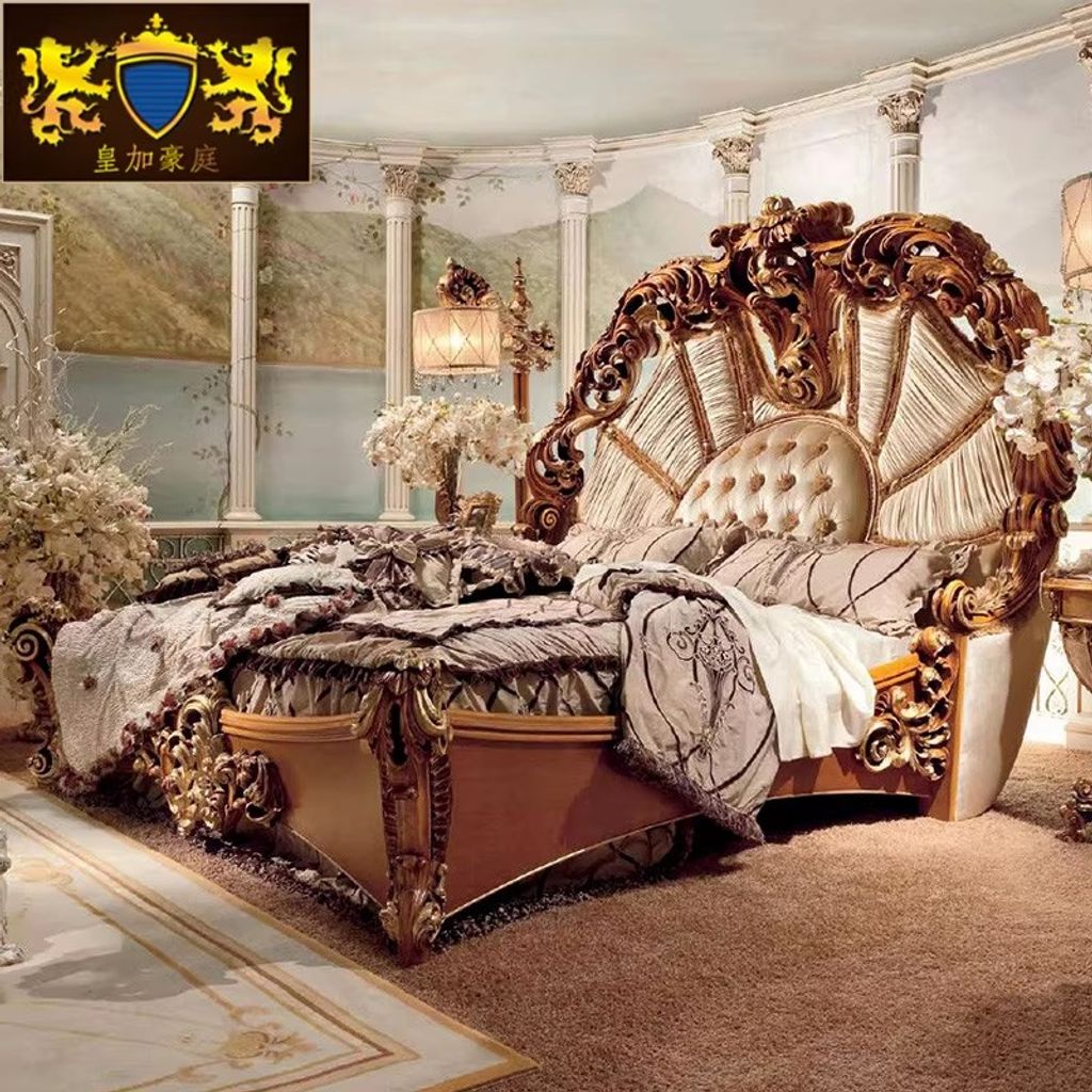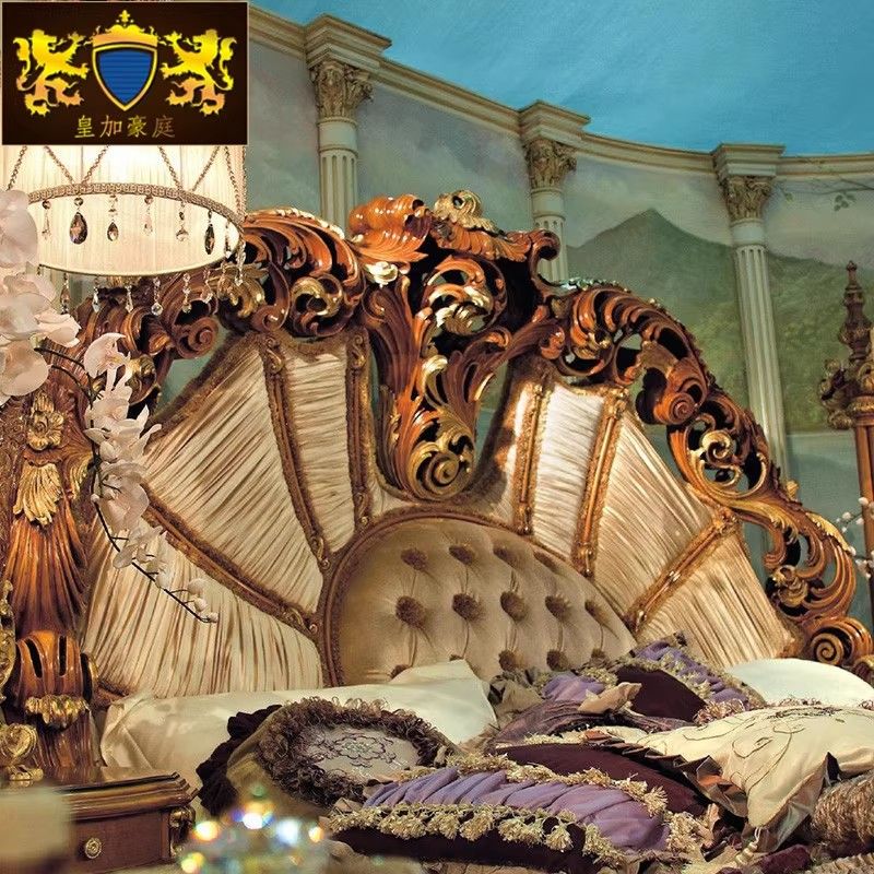 European Fabric Bed 18m Custom Villa Furniture Luxury Carved Wedding Bed Double Bed Solid Wood Bed Princess Bed