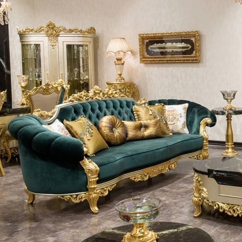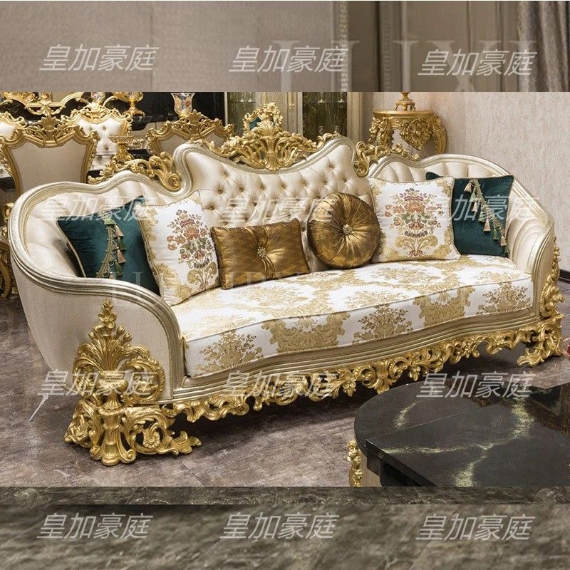 European Fabric Sofa Set 123 Solid Wood Carved Living Room Large Size Villa Luxury Sofa High End Custom