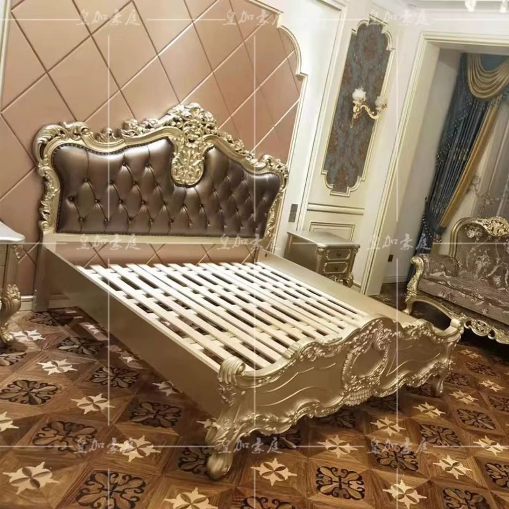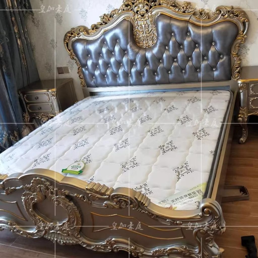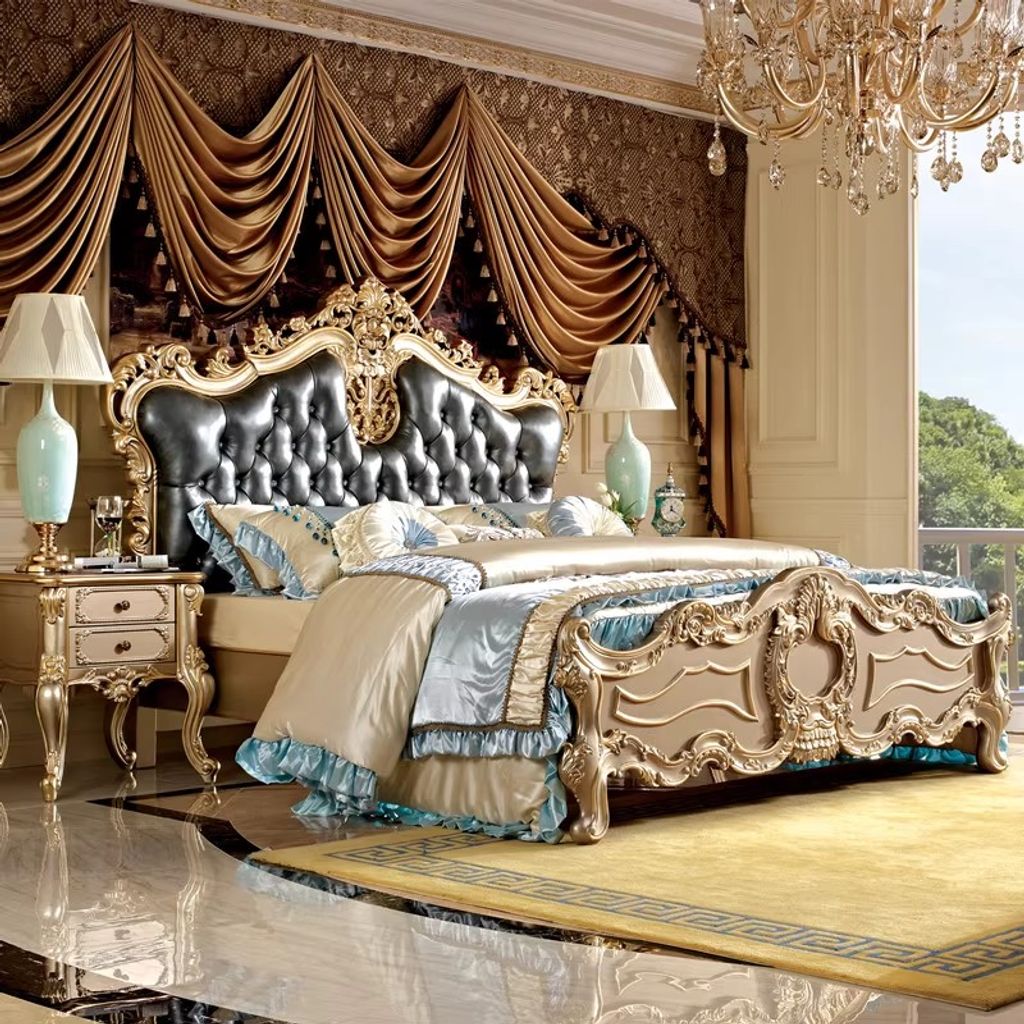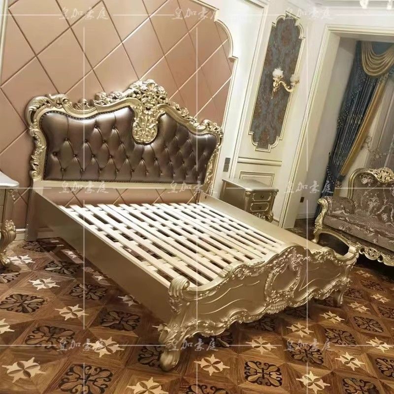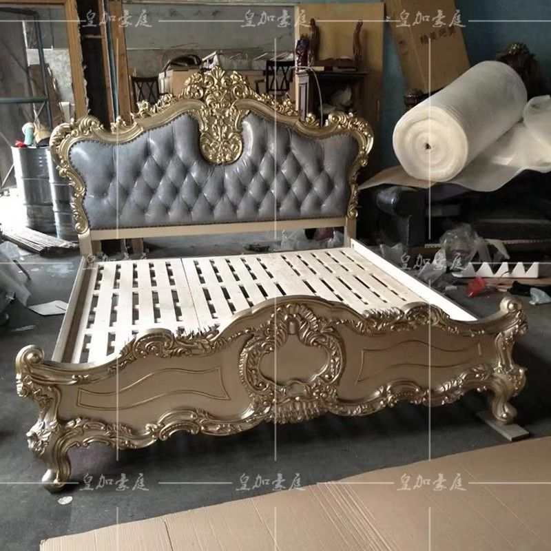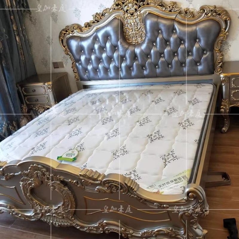 European Leather Bed Luxury Leather Bed Solid Wood Carved Furniture 18m Upholstered Bed Double Bed Master Bedroom Wedding Bed
