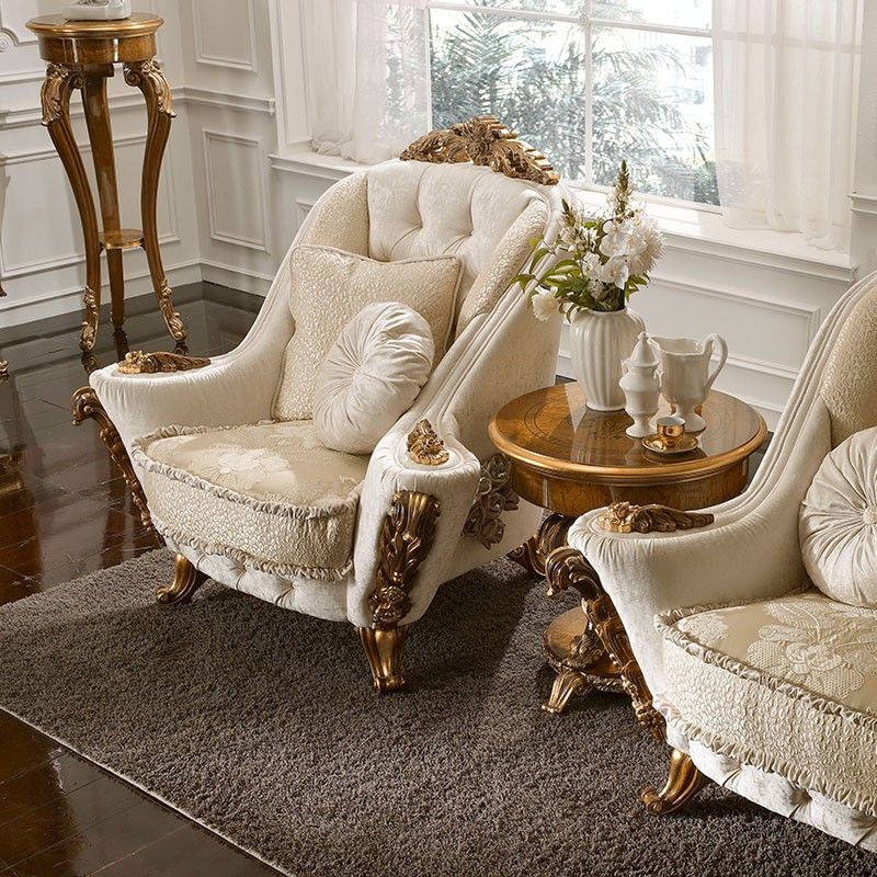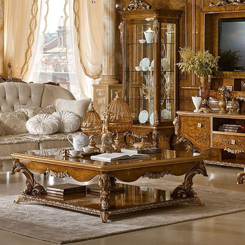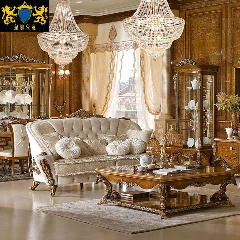 European Luxury Solid Wood Fabric Sofa Set Tufted Italian Carved Whole Set Villa Living Room Sofa Custom