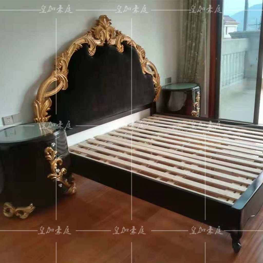 European Solid Wood Bed Living Room Velvet Black Wedding Bed Bedroom Furniture Double Bed 18m Neo Classic Bed Princess Bed