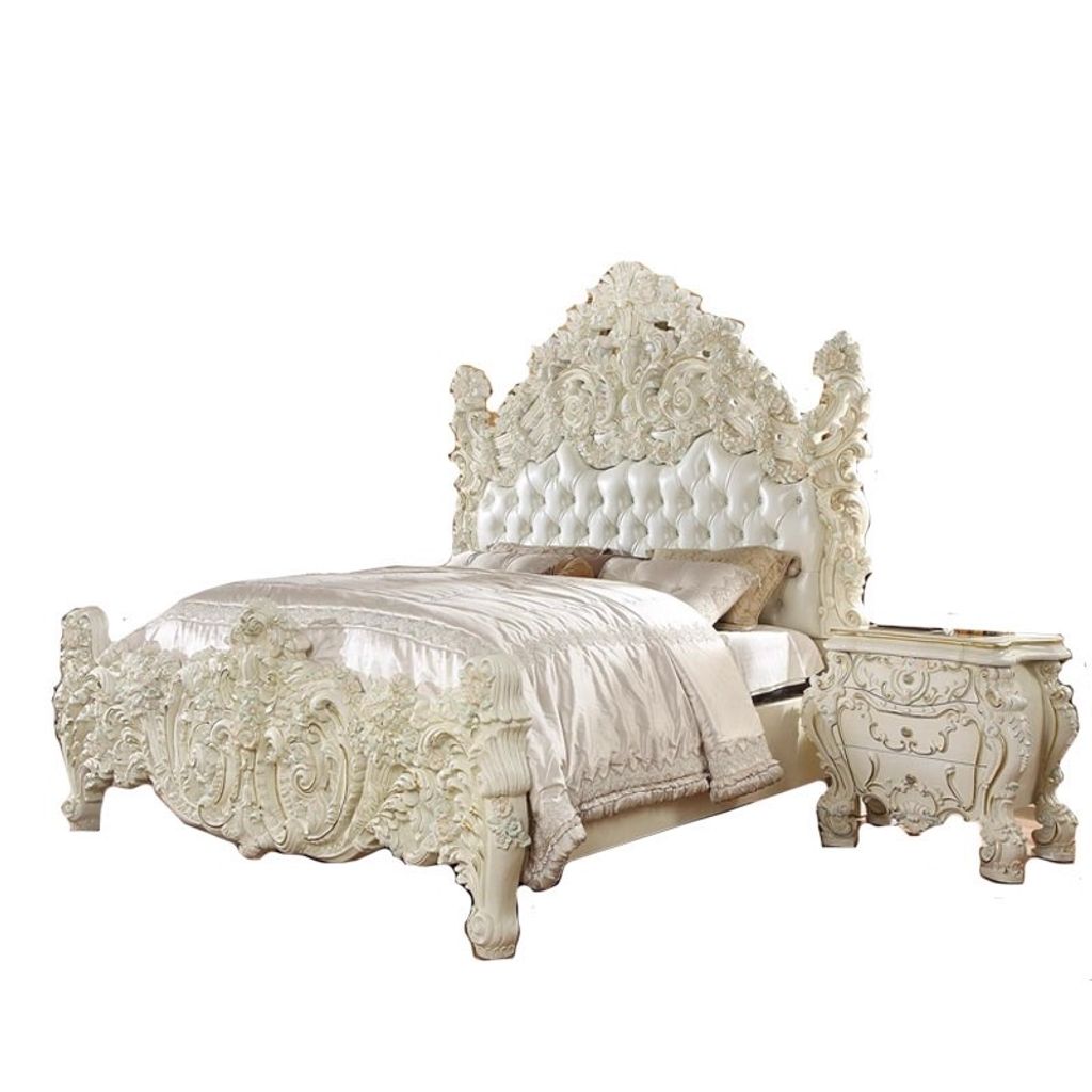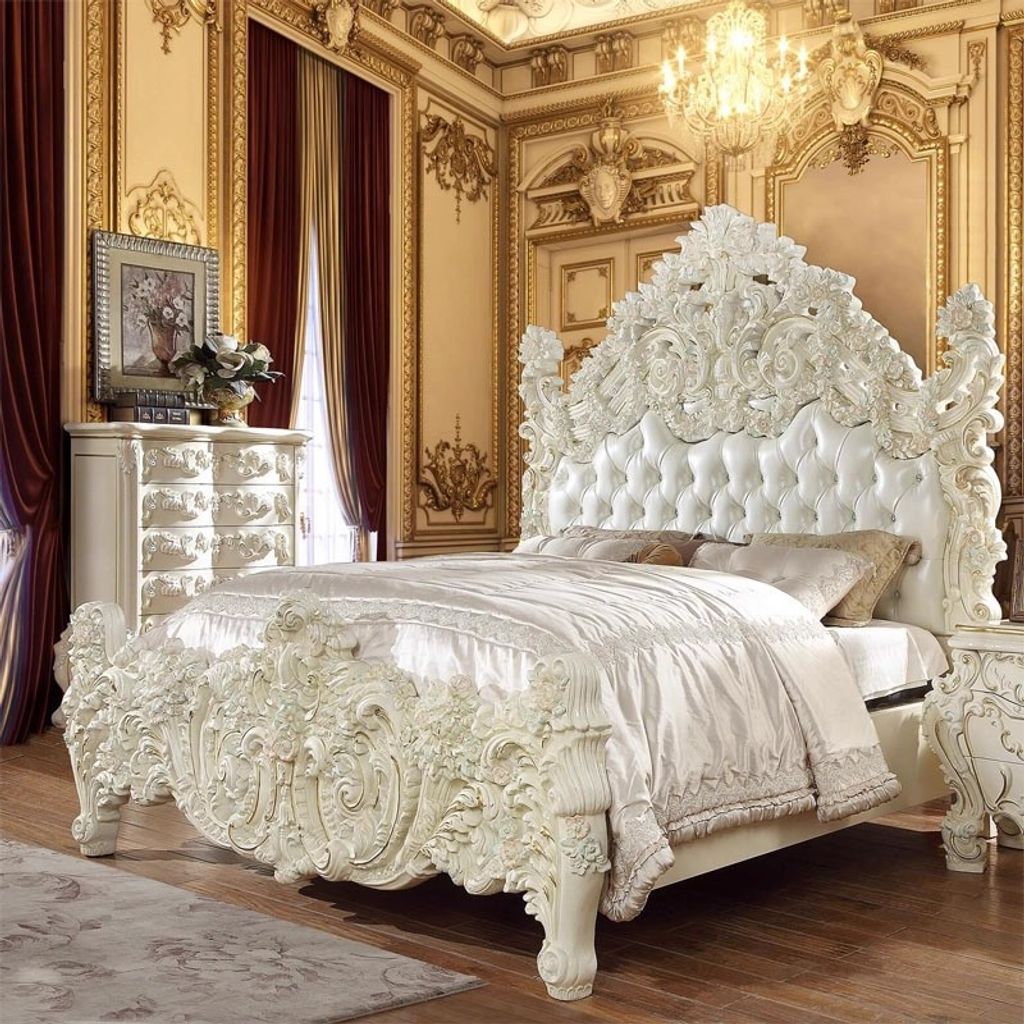 Royal Majesty European Luxury Solid Wood Carved Leather Bed Villa Furniture Royal Master Big Bed French Wedding Bed