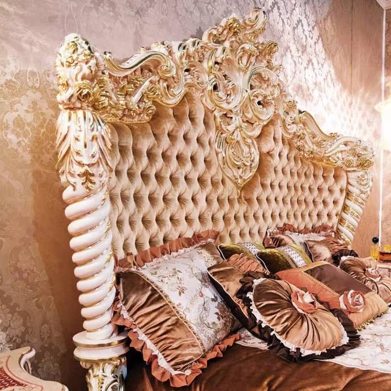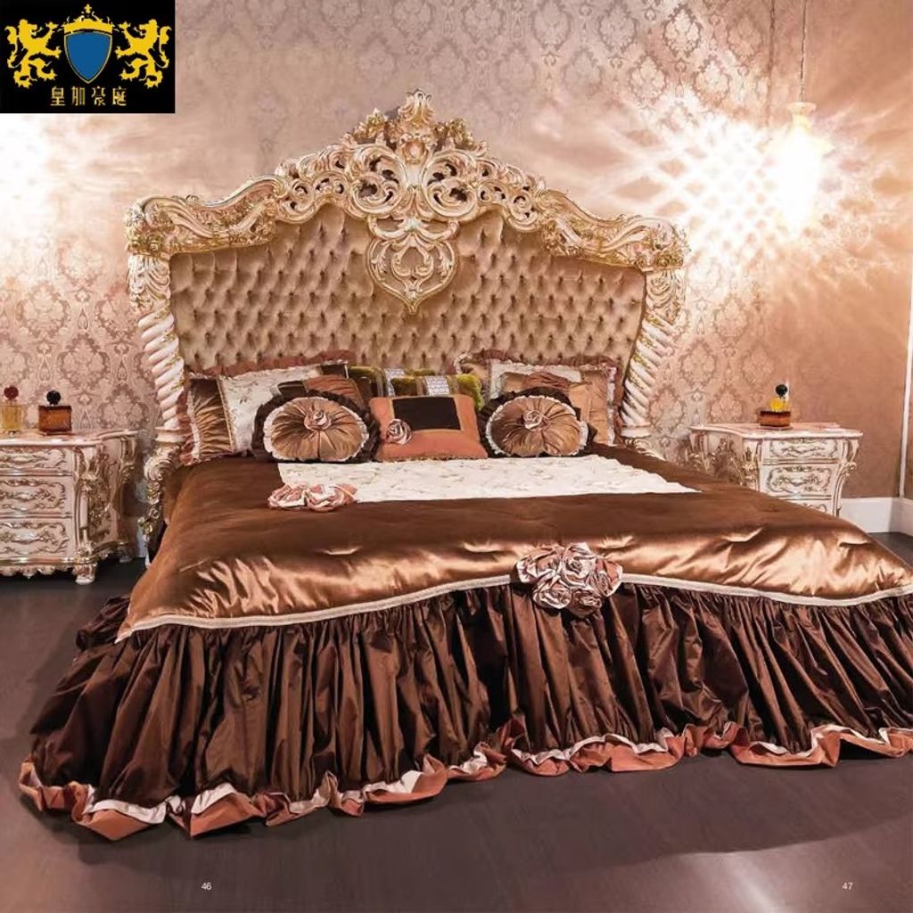 Royal Majesty European Solid Wood Carved Double Bed Large Size High End Custom Luxury Villa Bedroom Wedding Bed