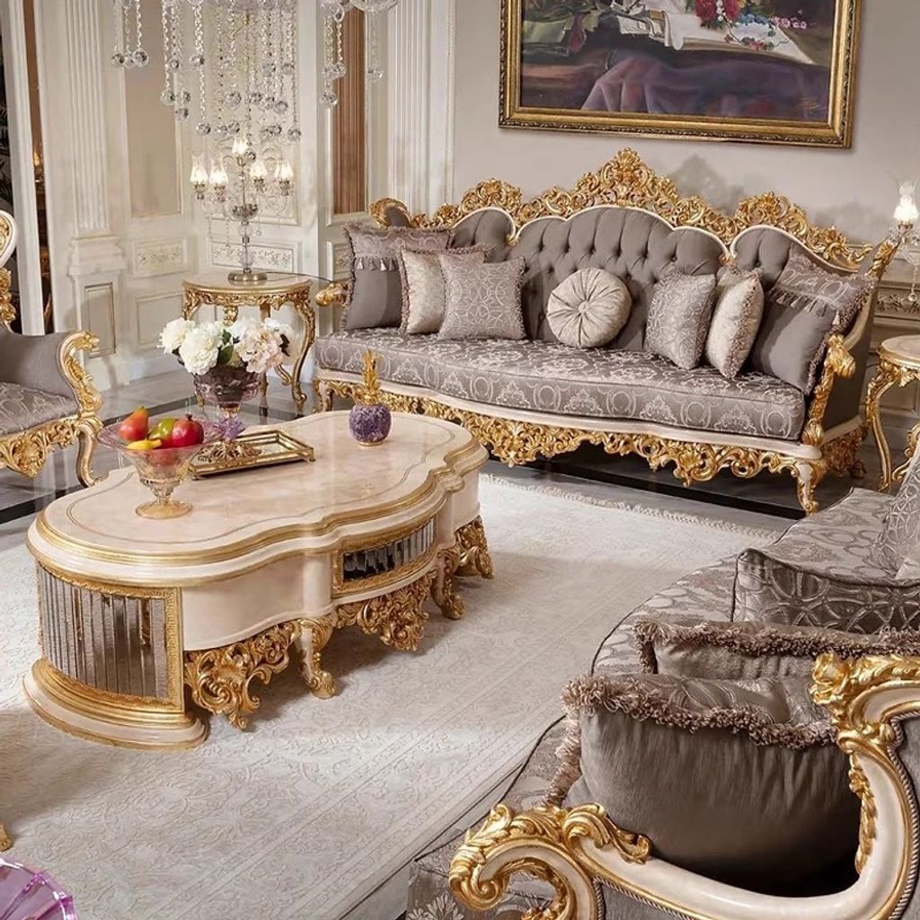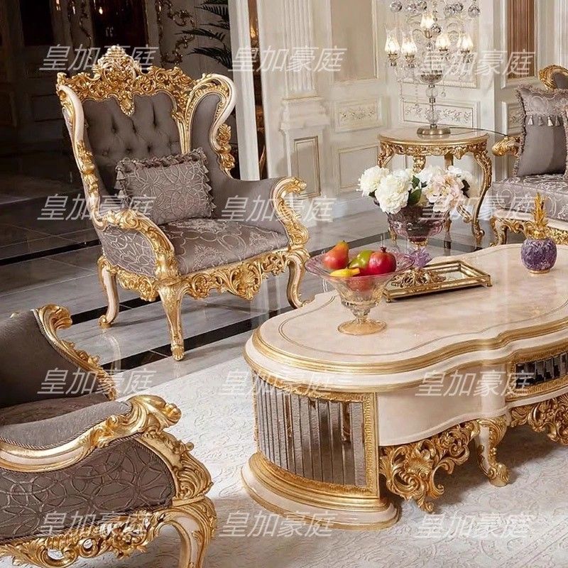 Royal Majesty Italian Fabric Sofa Set Royal Large Size Luxury All Solid Wood Villa Living Room Furniture
