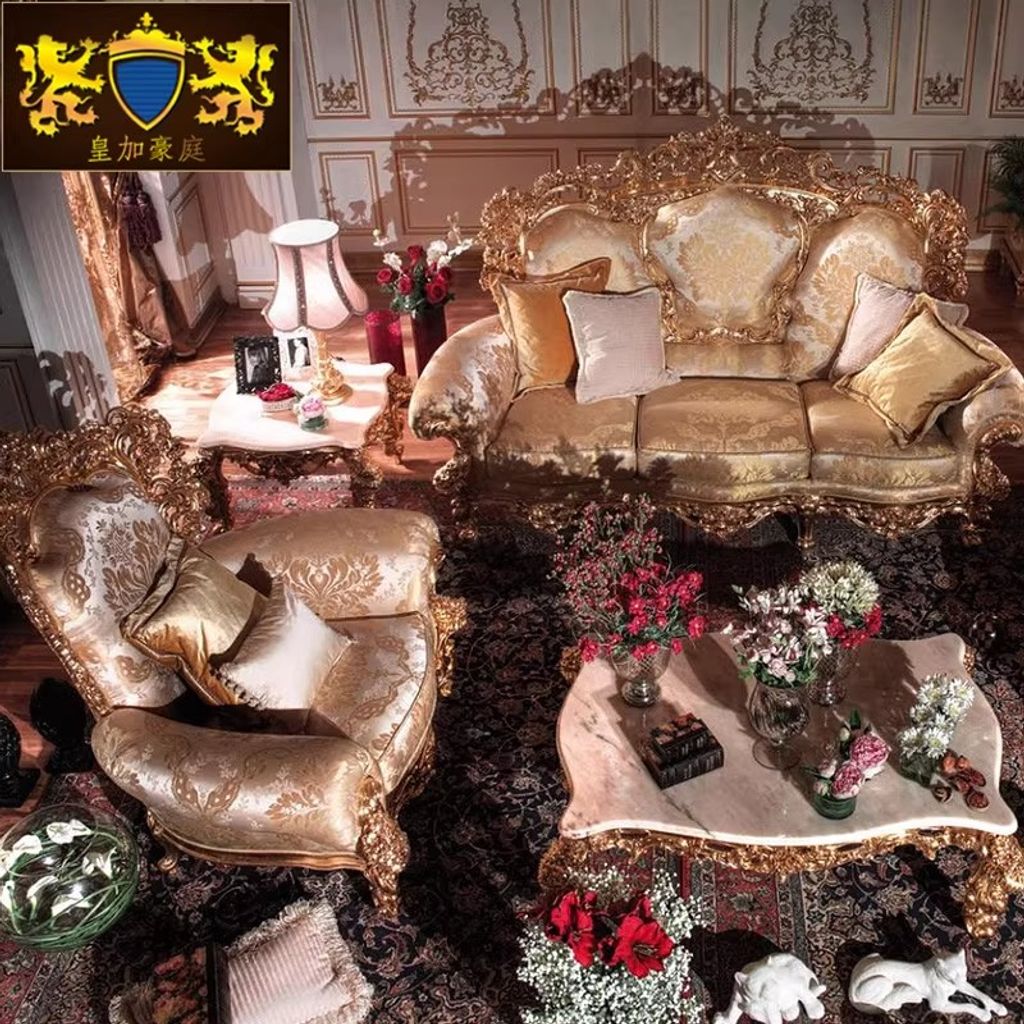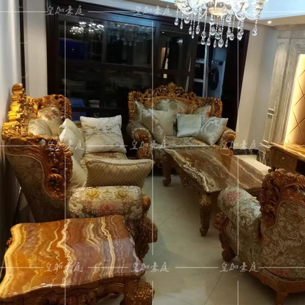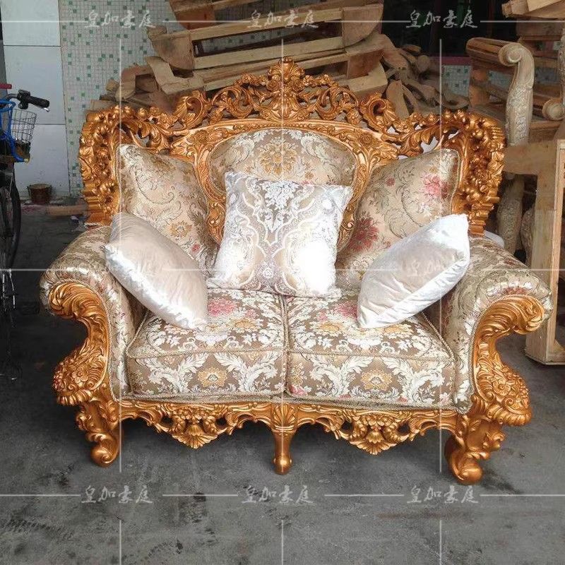 Solid Wood Sofa Set 123 Living Room Furniture American Luxury Single Double Three Seater Sofa European Fabric Sofa